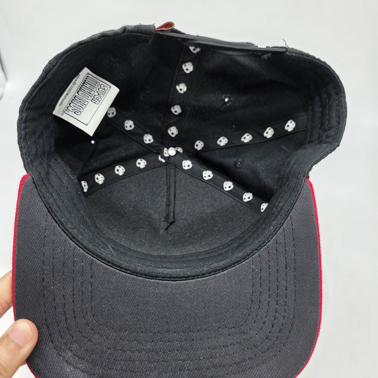как выглядит Super Mario Bros Hat Cap Snap Back One Size Black Red Game Over Retro Geek Mens фото