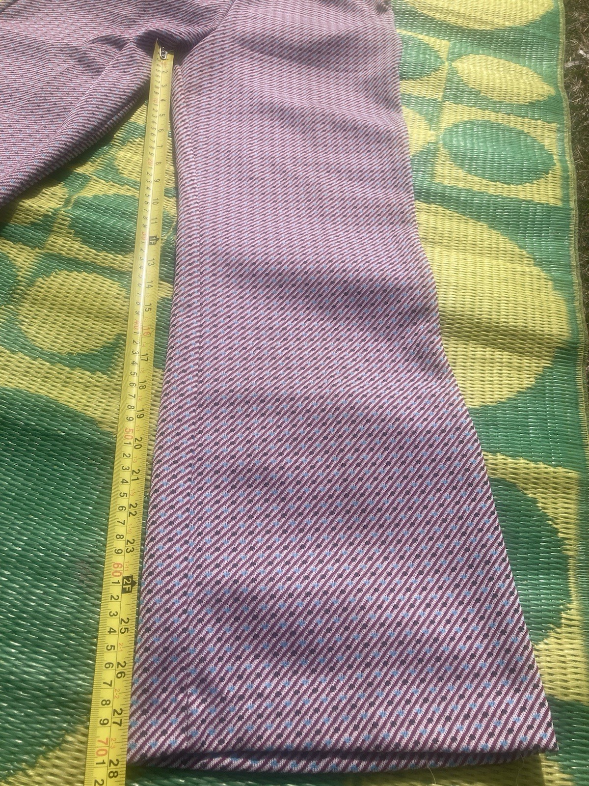 как выглядит Vintage 1970 s Women s Pink Purple Dots Stretch Poly Pull-On Bell Bottoms SM/MED фото