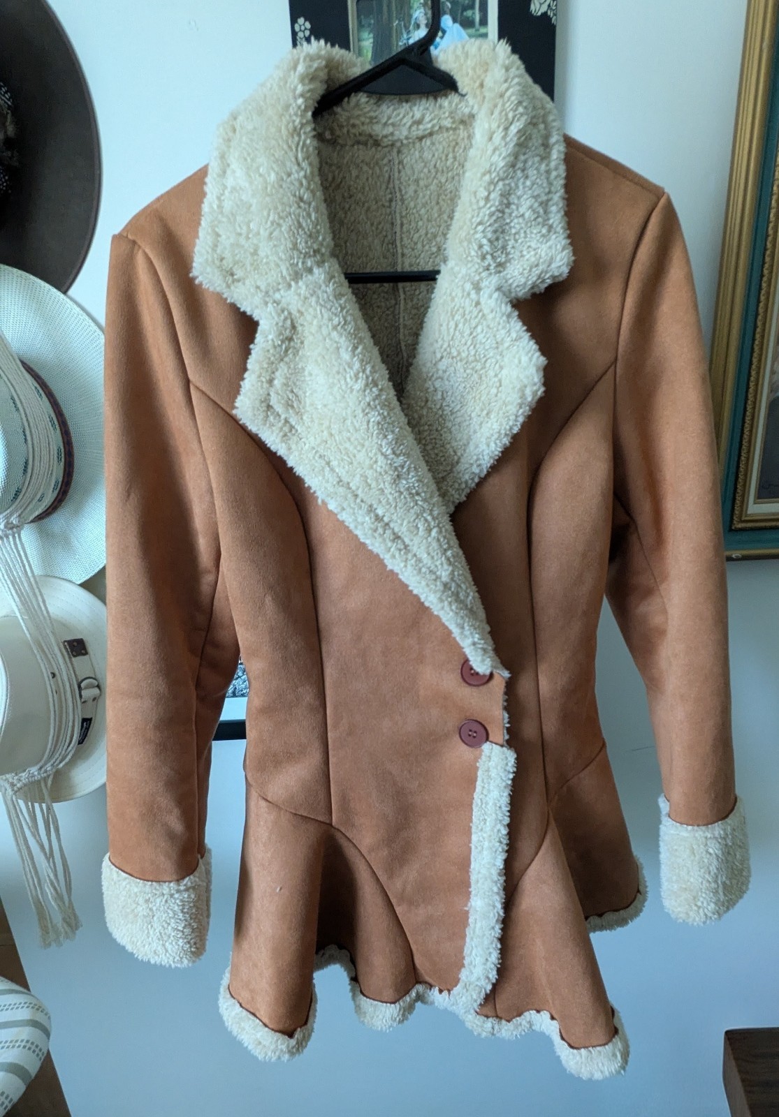 как выглядит Vintage 1970s Lapel Flared Hem Suede Jacket фото