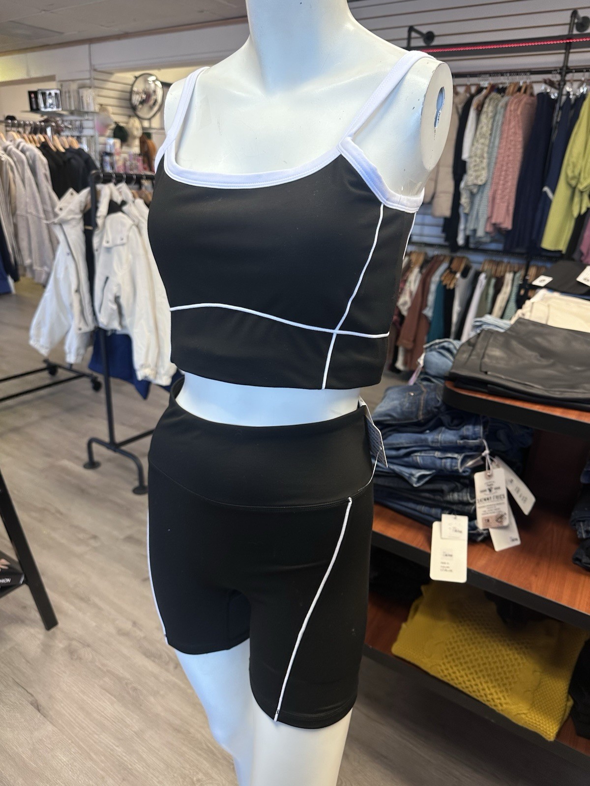 Black White 2 Piece Shorts Yoga Pilates Athletic Athleisure Stretch Set