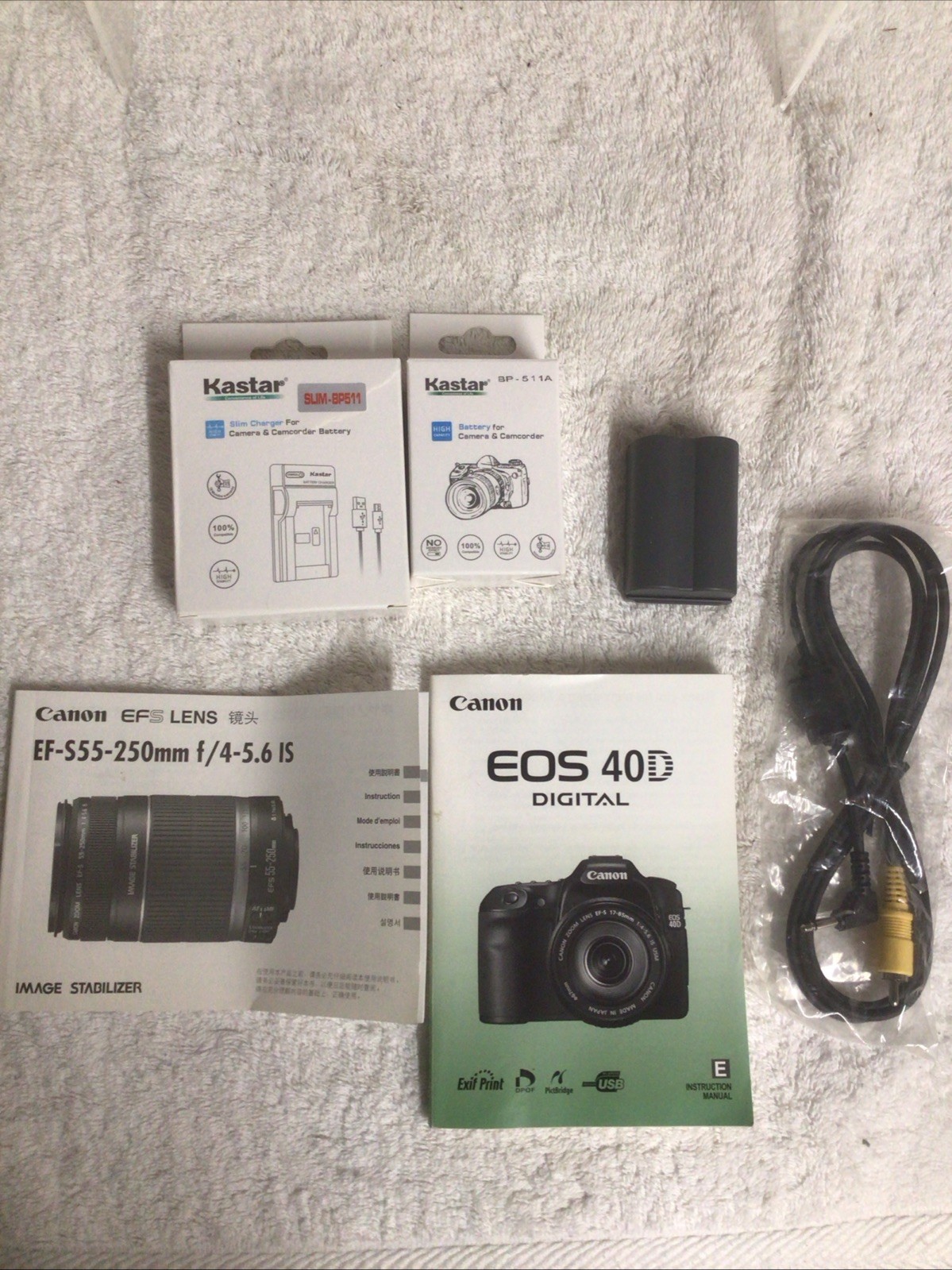 Canon EOS 40D 10.1MP Digital SLR Body Charger Battery Bag Manuals Cable Working
