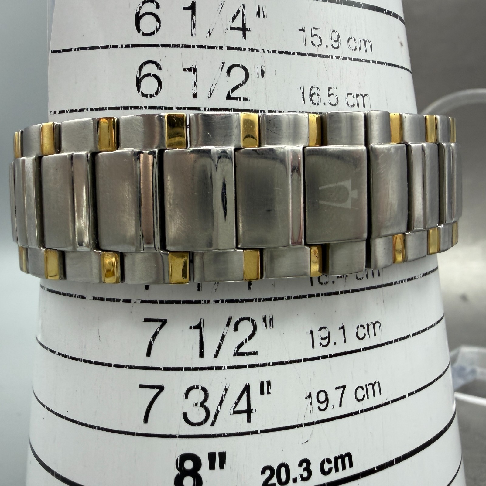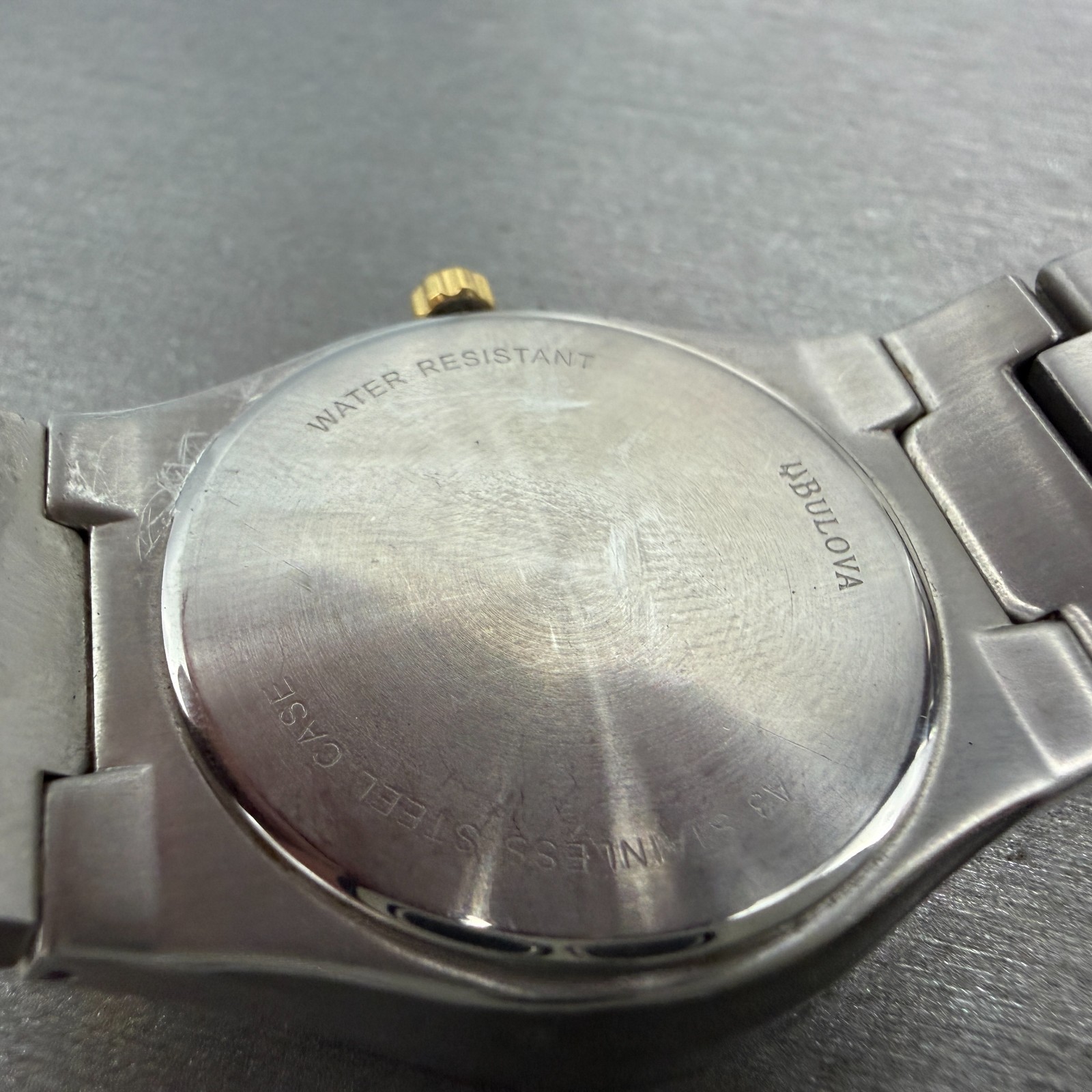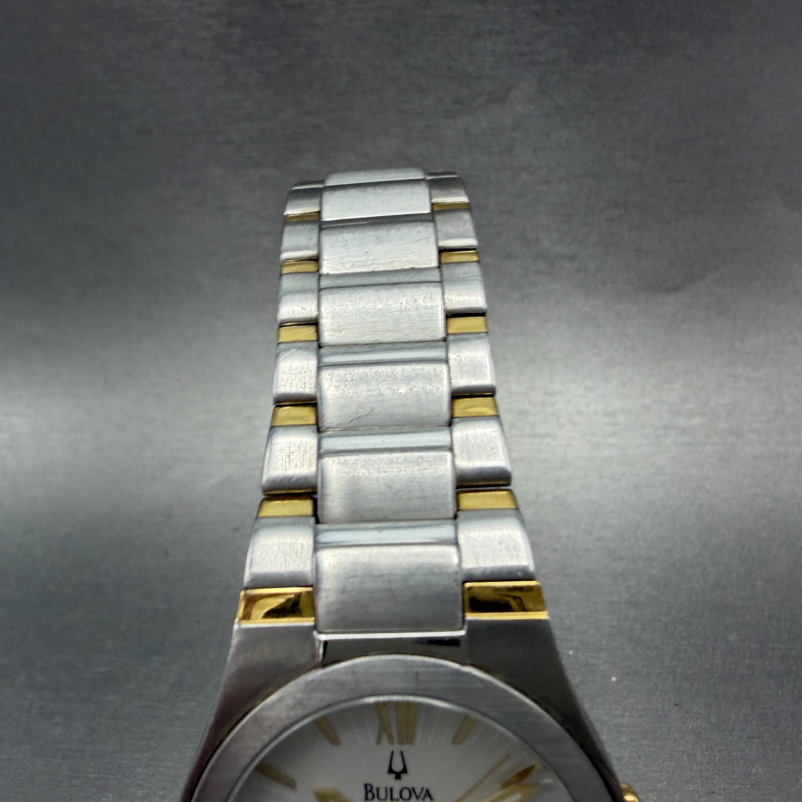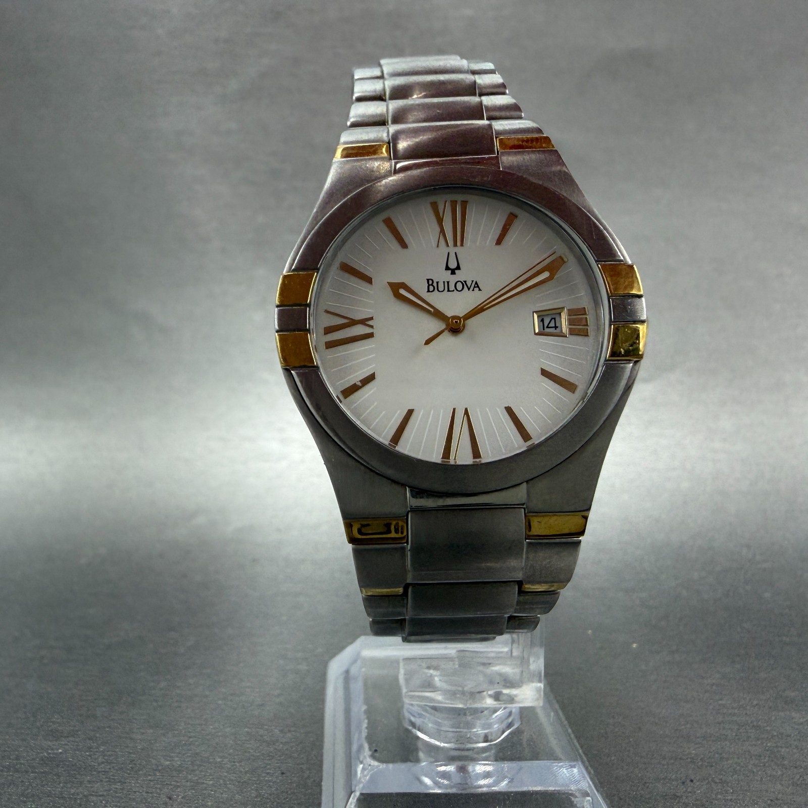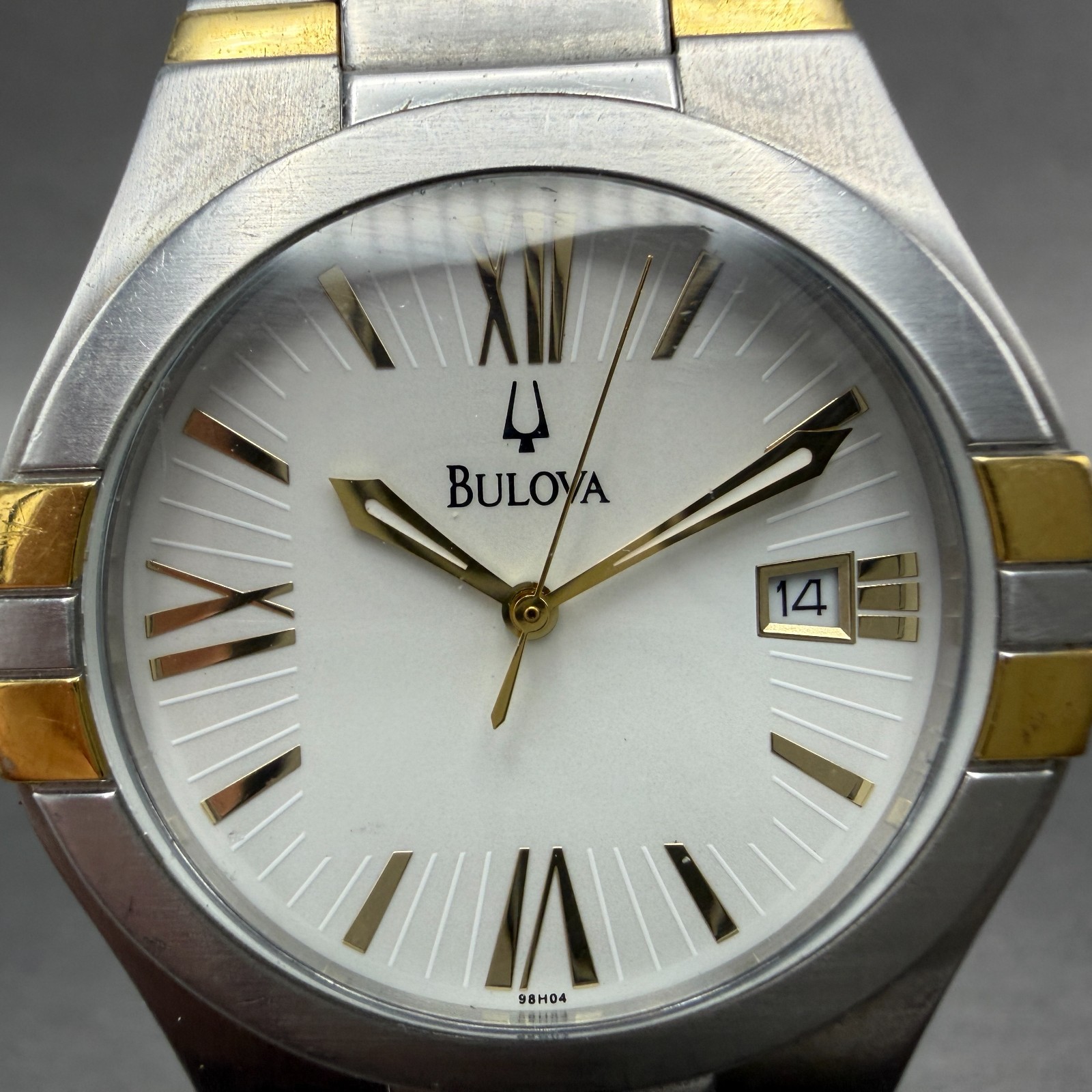 Bulova Watch Men 35mm White Dial Two Tone Date Round 98H04 New Battery