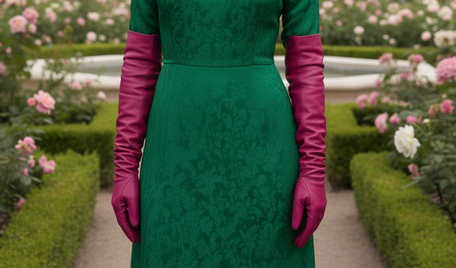Women Long Pink Sheep Leather Gloves Smooth Lined Elegant Winter Dress Wear