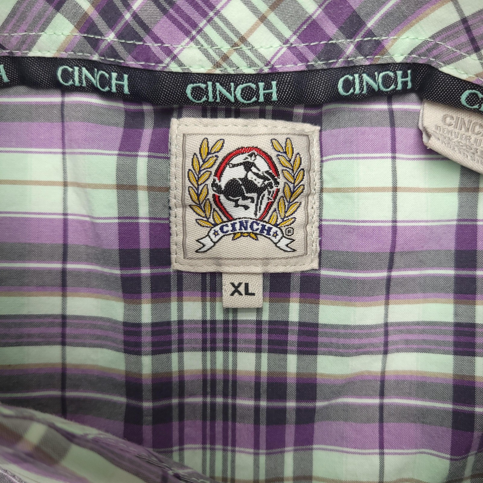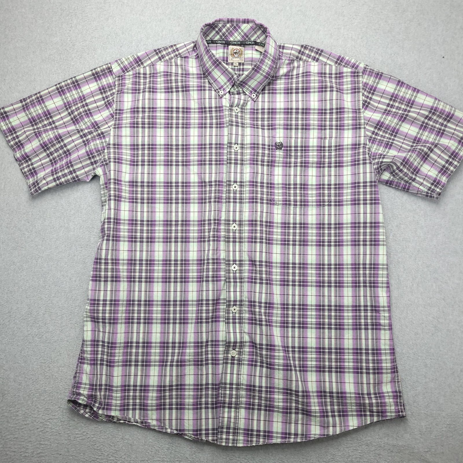 Cinch Shirt Mens XL Purple Plaid Short Sleeve Button Up Cotton Casual Top