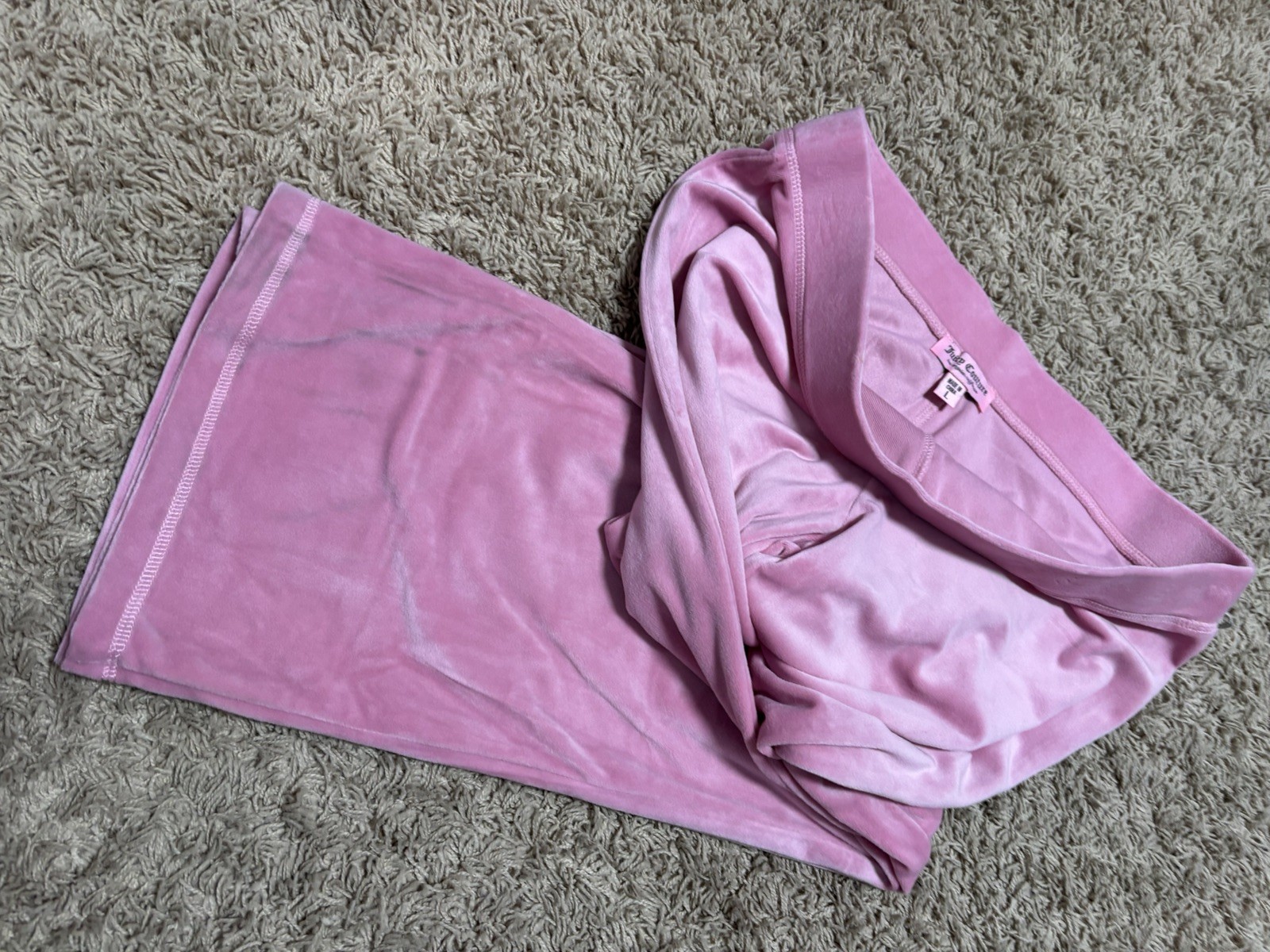 Juicy Couture rose Pink Velour Velvet Pullover Hoodie Sweatpants Set Women L