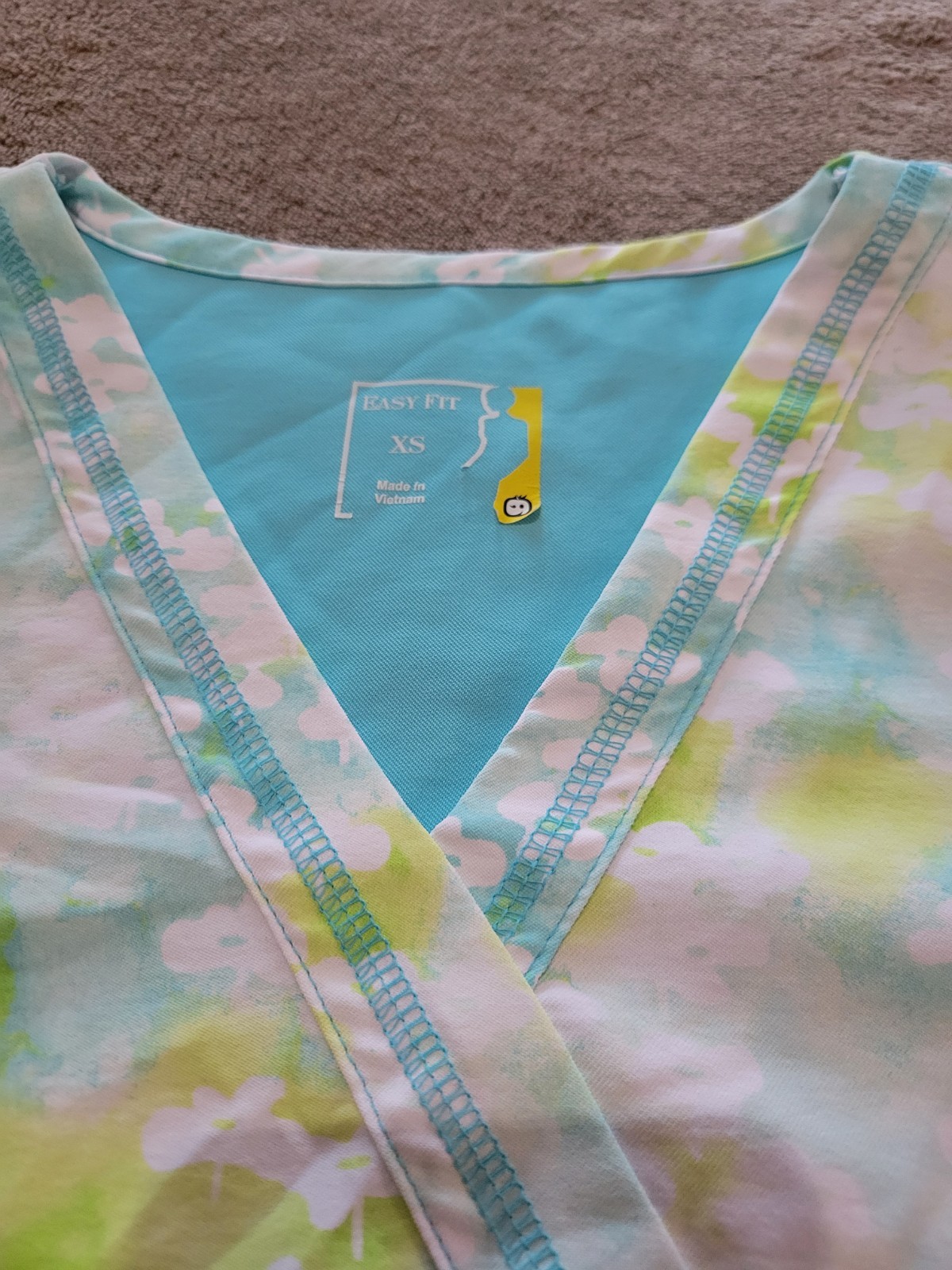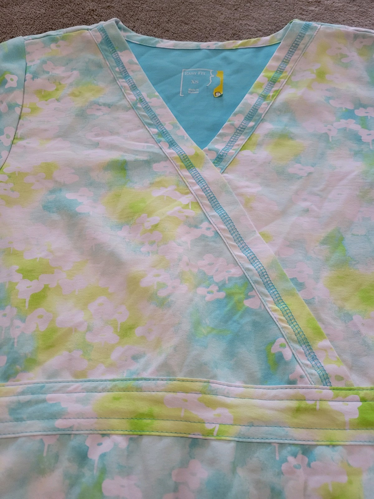 Easy Fit XS Scrub Top Short Sleeve Pockets Medical Nurse Uniform blue spring