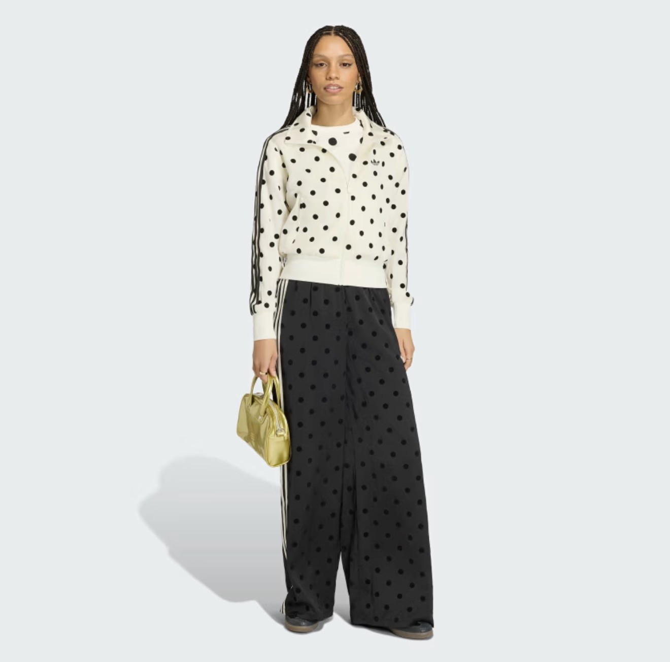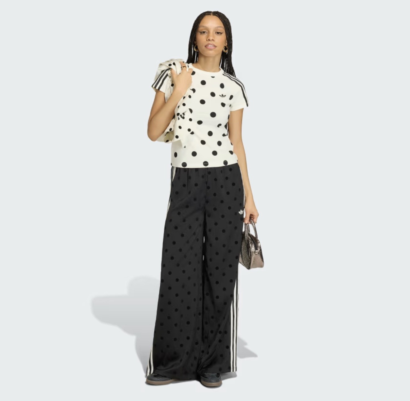 Adidas Black SATIN POLKA DOTS WIDE LEG PANTS M Medium New Nwt