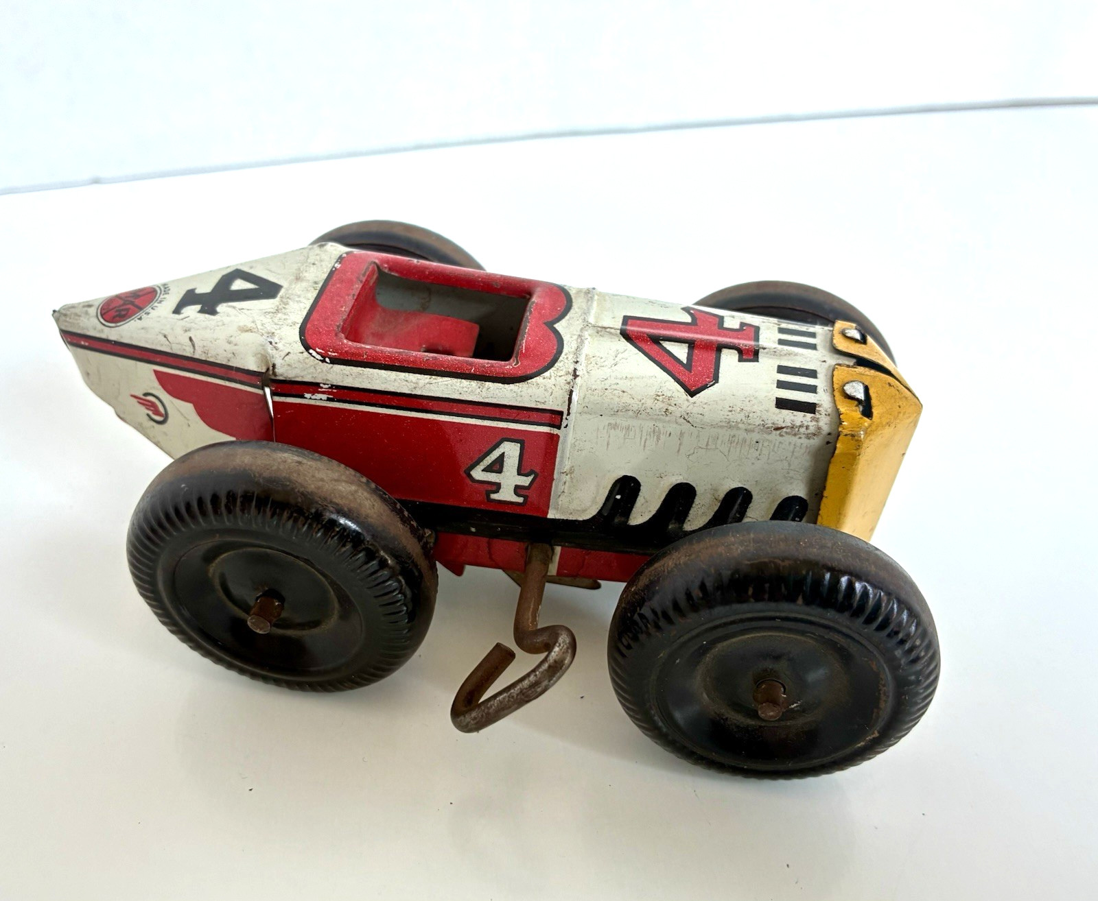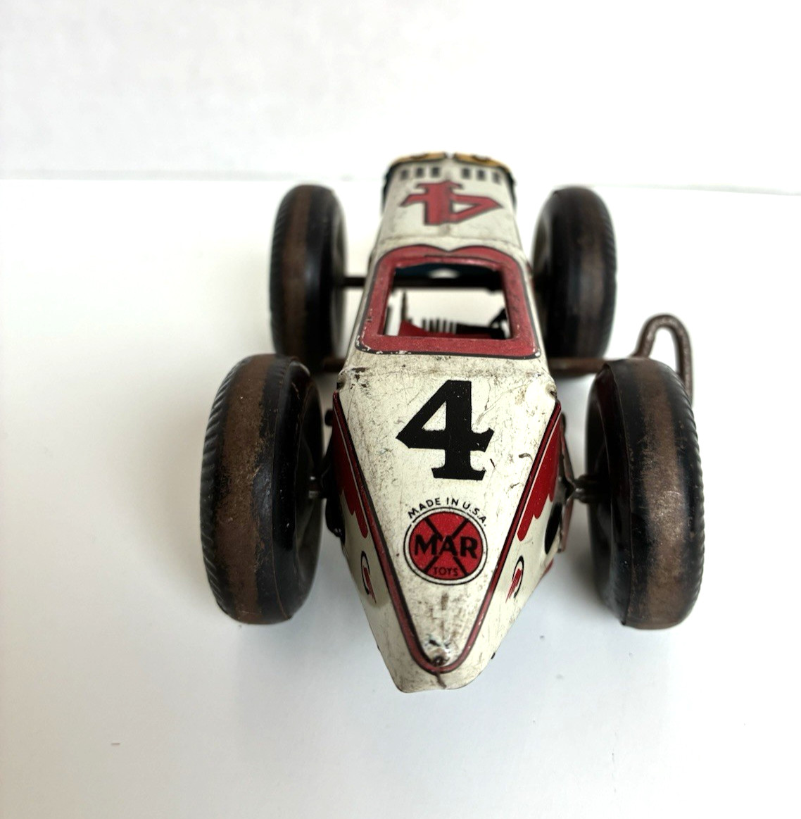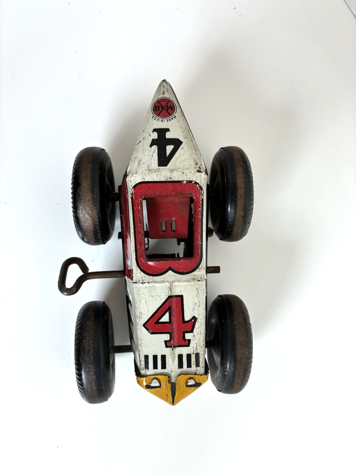 Vintage Small 5 Marx Tin Wind-up 4 Red and White Race Car, No Driver