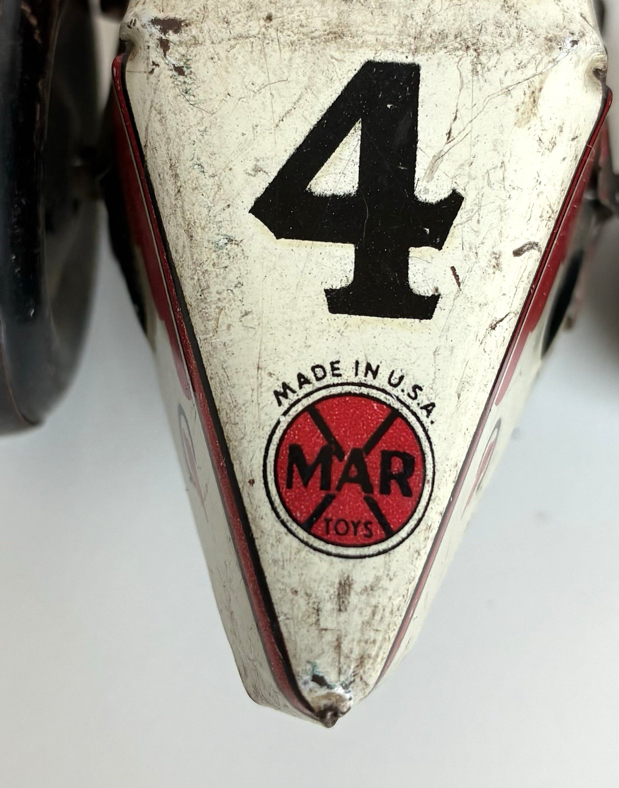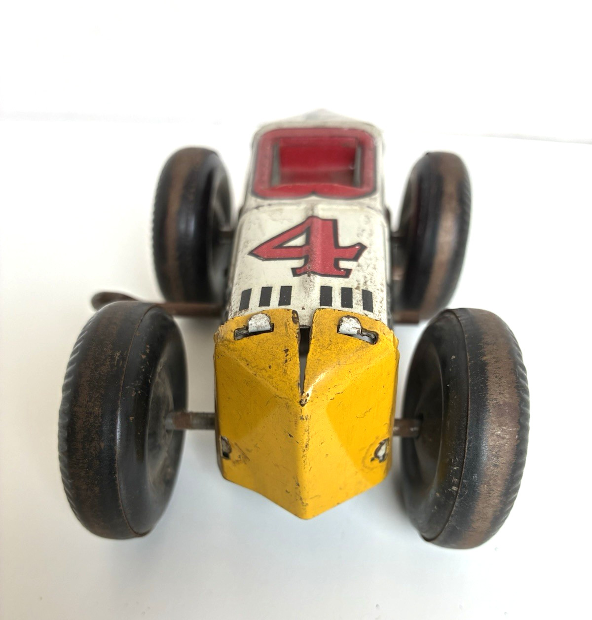 как выглядит Vintage Small 5" Marx Tin Wind-up 4 Red and White Race Car, No Driver фото