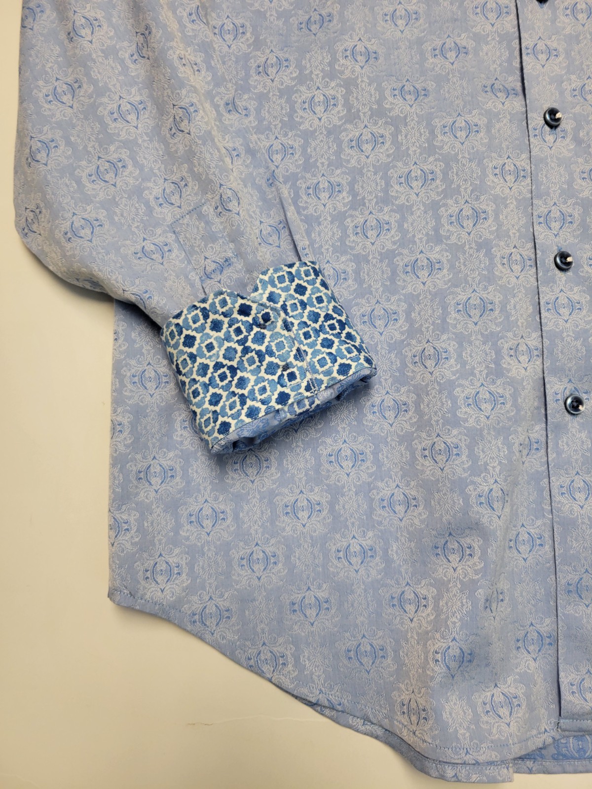 как выглядит ROBERT GRAHAM Casual Shirt Mens LARGE L Classic Fit Geometric Blue FLIP CUFFS фото