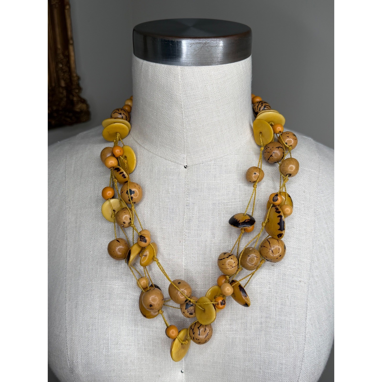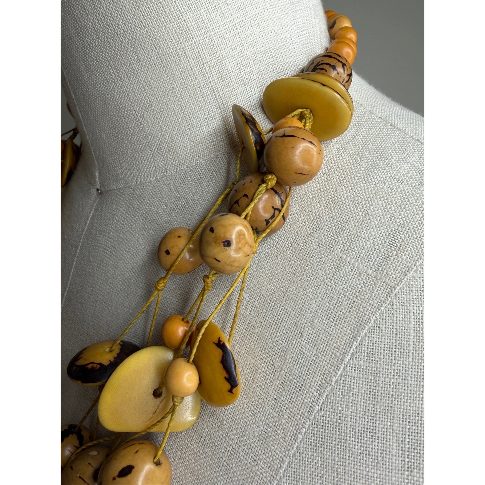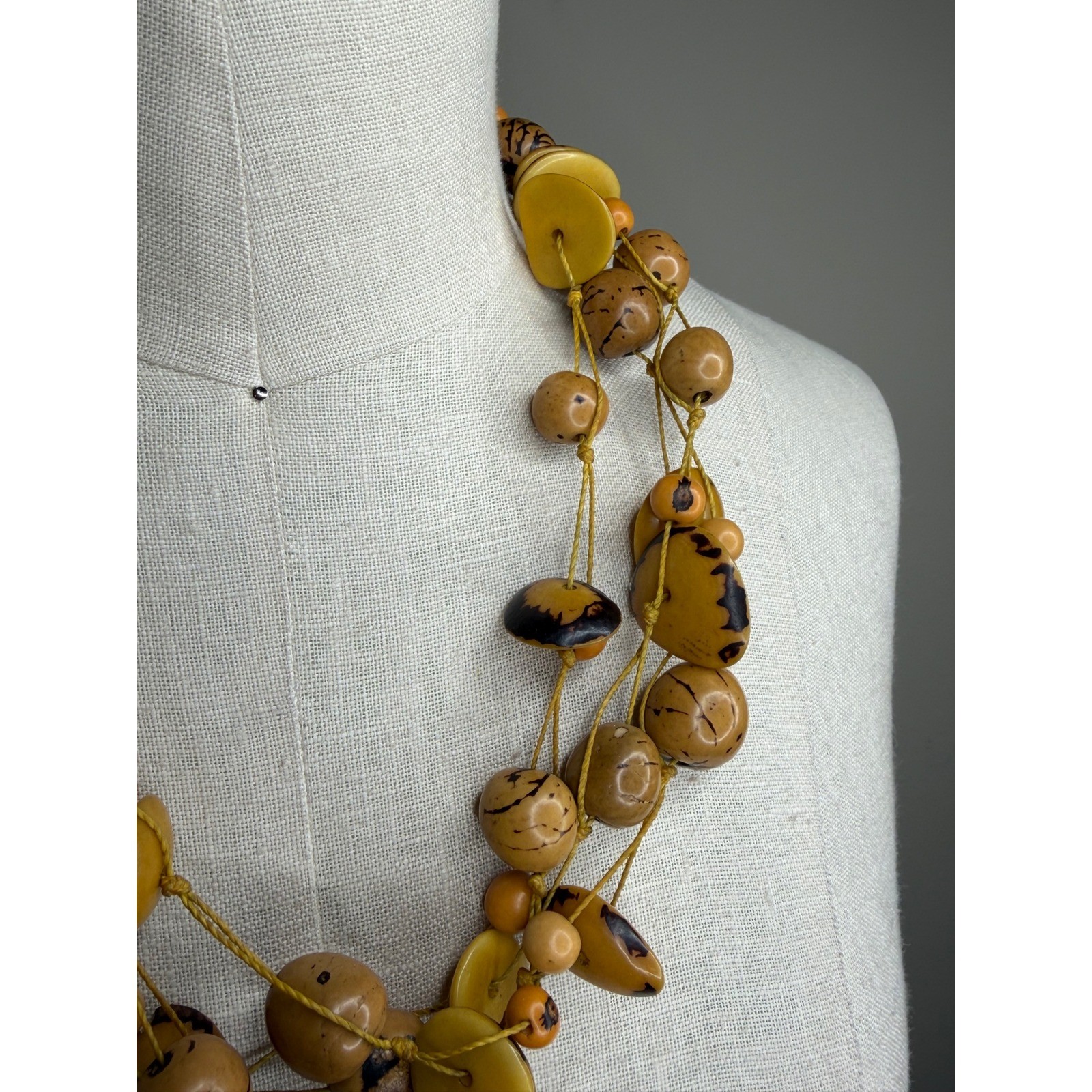 Unbranded Tagua Nut Seed Necklace Yellow Brown Earthy Boho Statement Women's OS