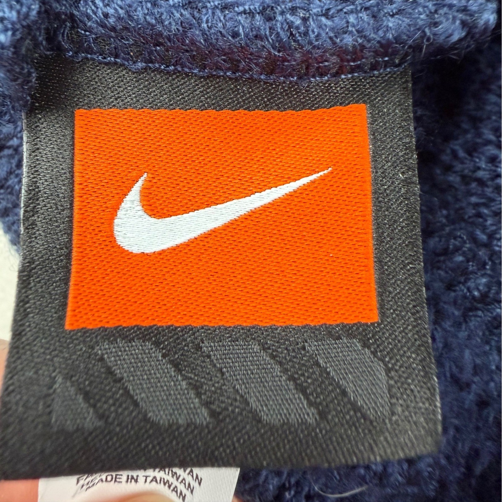 Nike Navy Blue Knit Beanie Hat Orange Swoosh Logo One Size Skull Cap