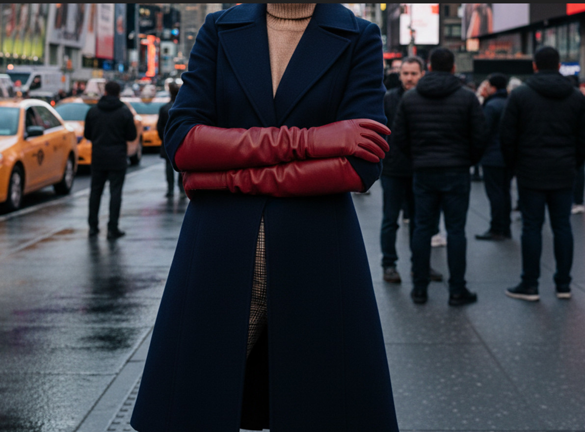 как выглядит Womens Long Deep Burgundy Leather Gloves Elegant Style фото