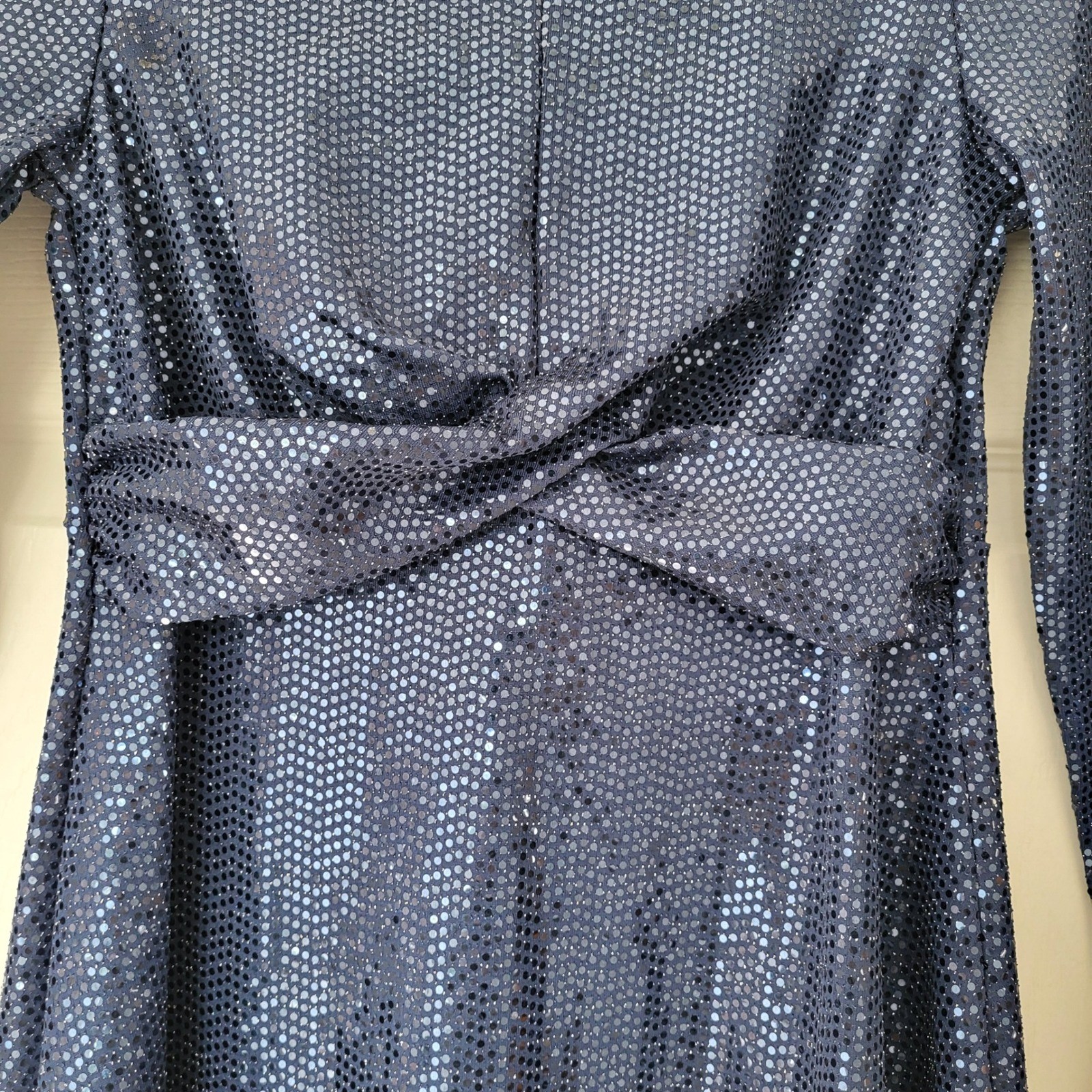 как выглядит Speechless Kids Girls 14 Navy Blue Sequin Twist Front Long Sleeve Skater Dress фото