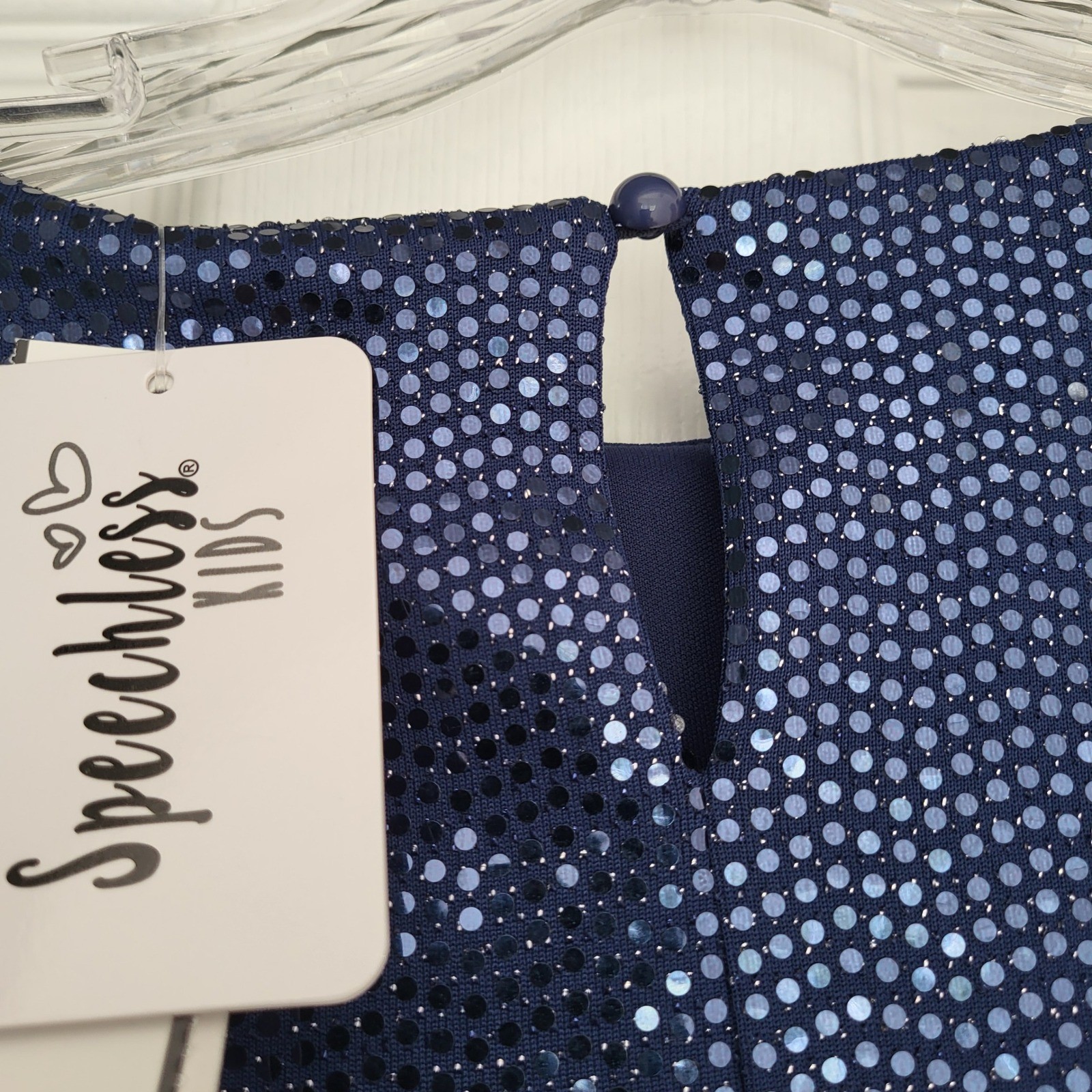 Speechless Kids Girls 14 Navy Blue Sequin Twist Front Long Sleeve Skater Dress