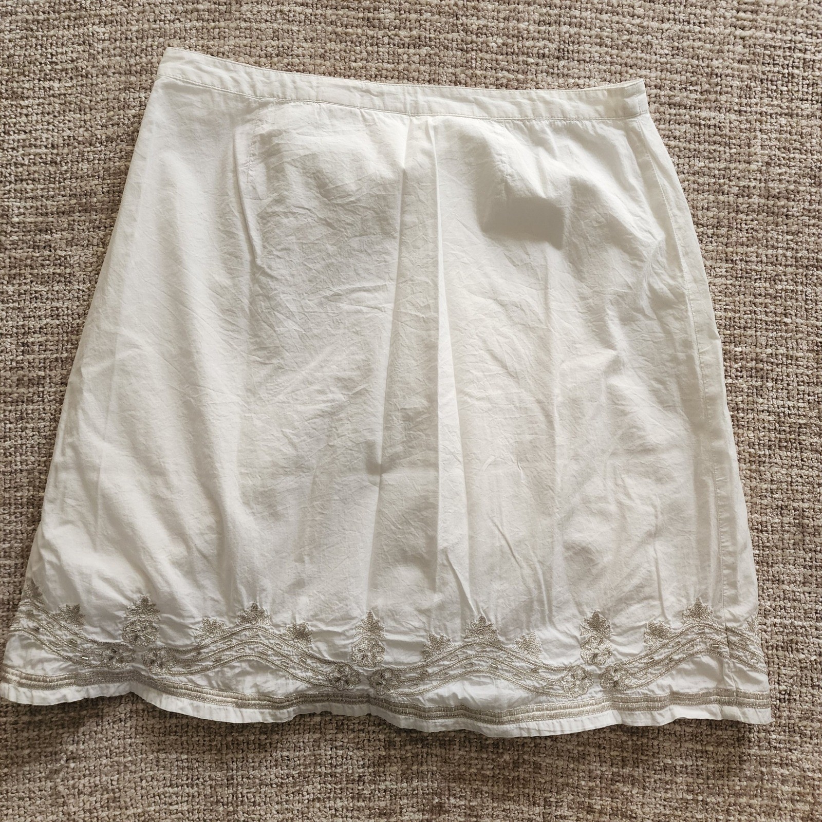 как выглядит vintage boho, fairy White Cotton Skirt, Silver Embroidery and Beadwork фото