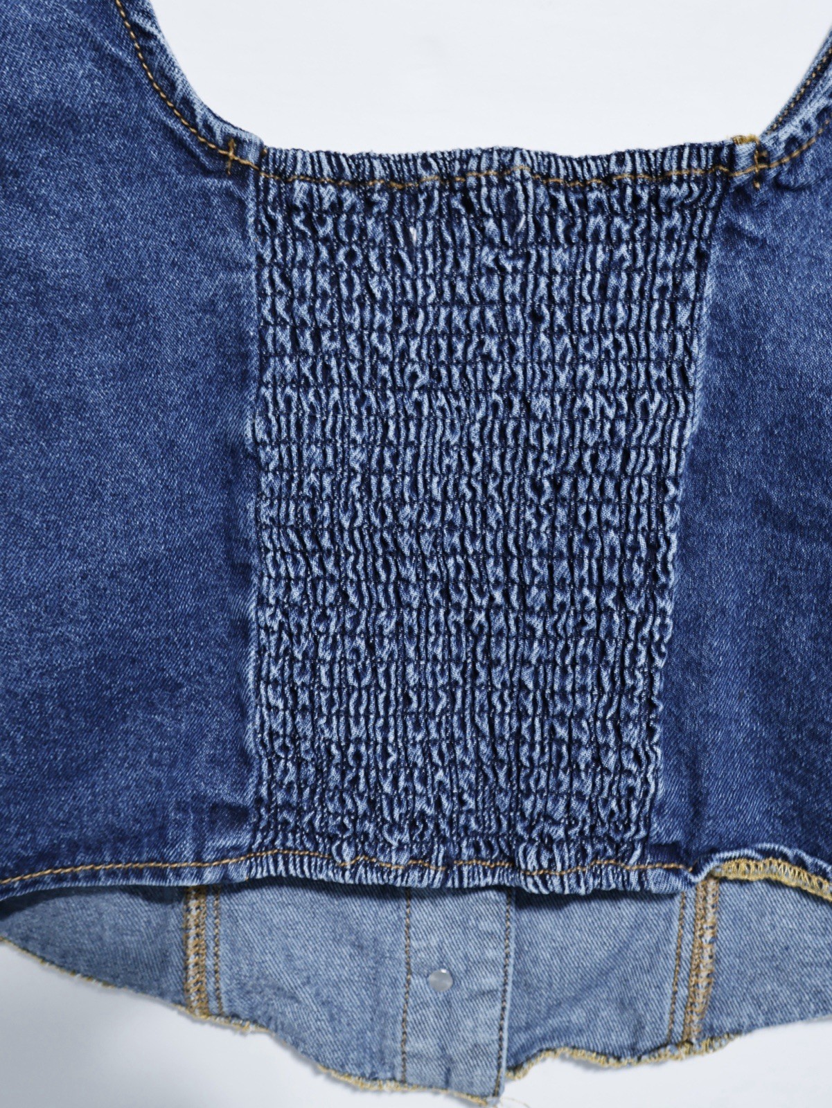 как выглядит Japna Denim Crop Bustier Corset Top Large Blue Womens Buttons Accent Rushed фото