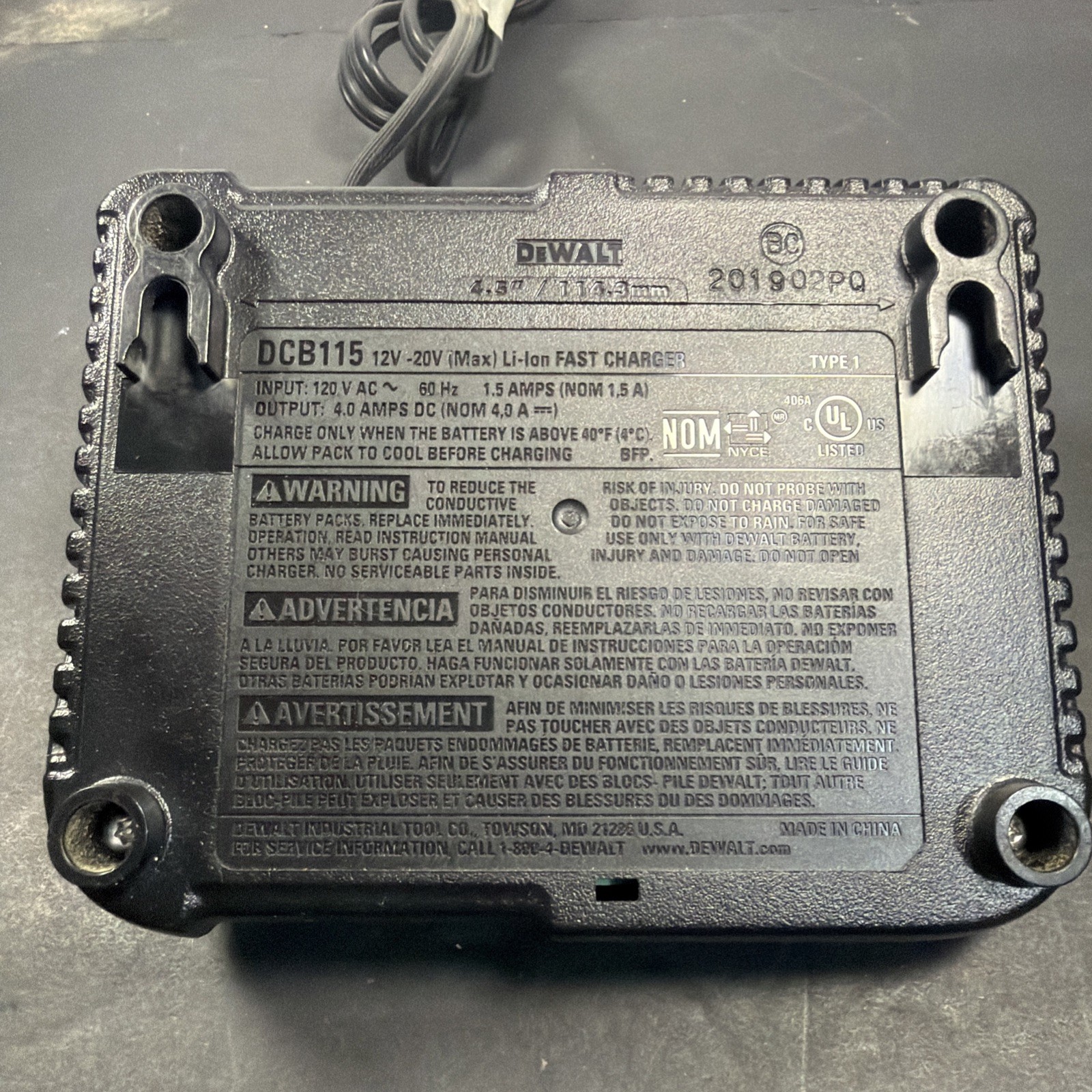 DEWALT 12V/20V MAX LITHIUM-ION 4AMP BATTERY CHARGER DCB115 AZP029341