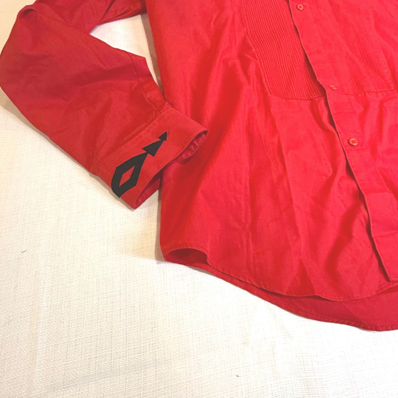 Vintage Fashion Gears Red Tuxedo Shirt with Black Bow Tie Collar Detail Men's XL