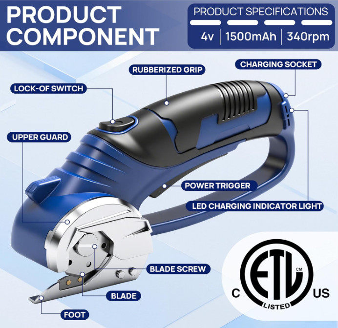Cordless Electric Scissors, 4V Cardboard Cutter,Box Cutter Fabric Scissor Cutter