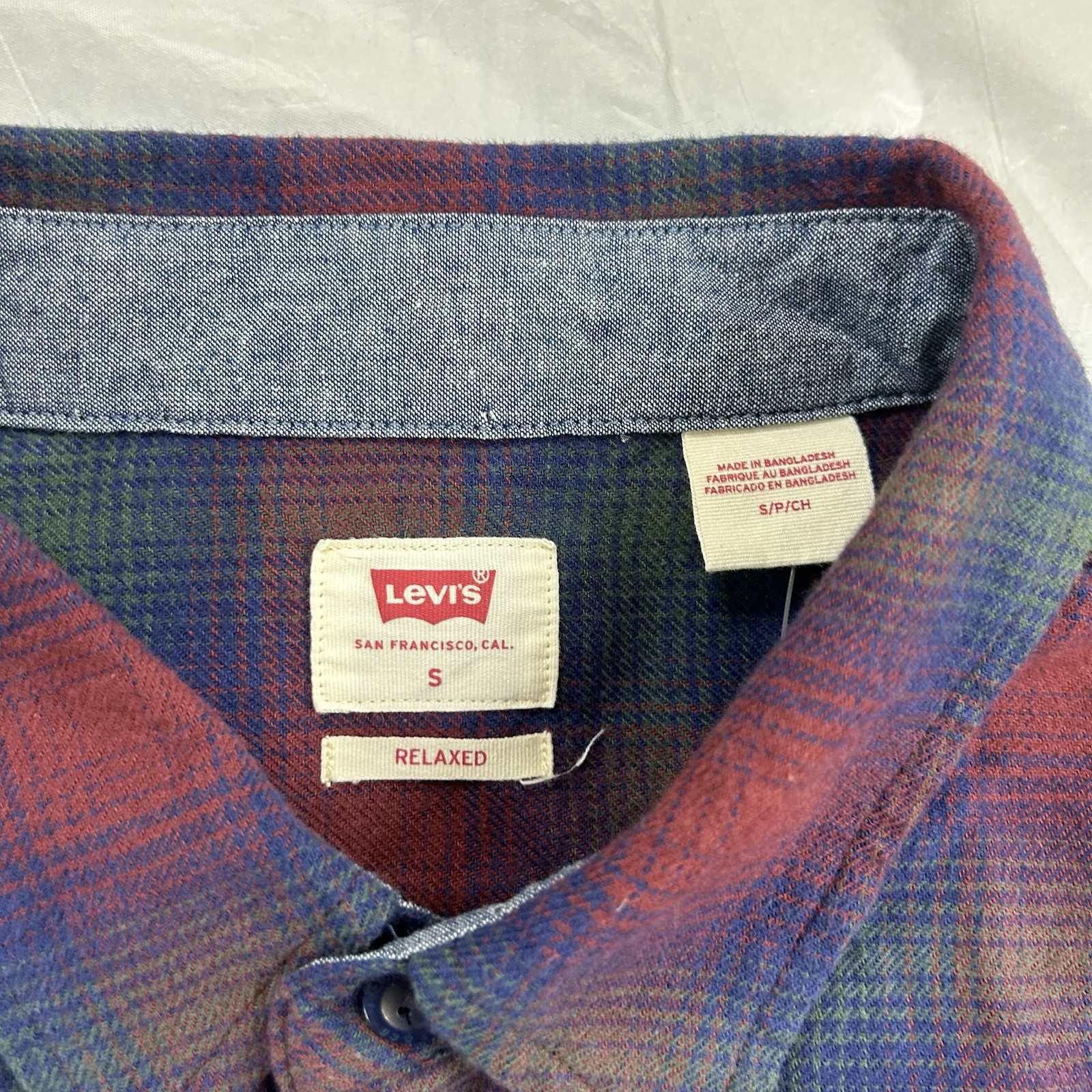 как выглядит Levis The Worker Mens Relaxed Red Plaid Long Sleeve Button Up Flannel Sz S NWT фото