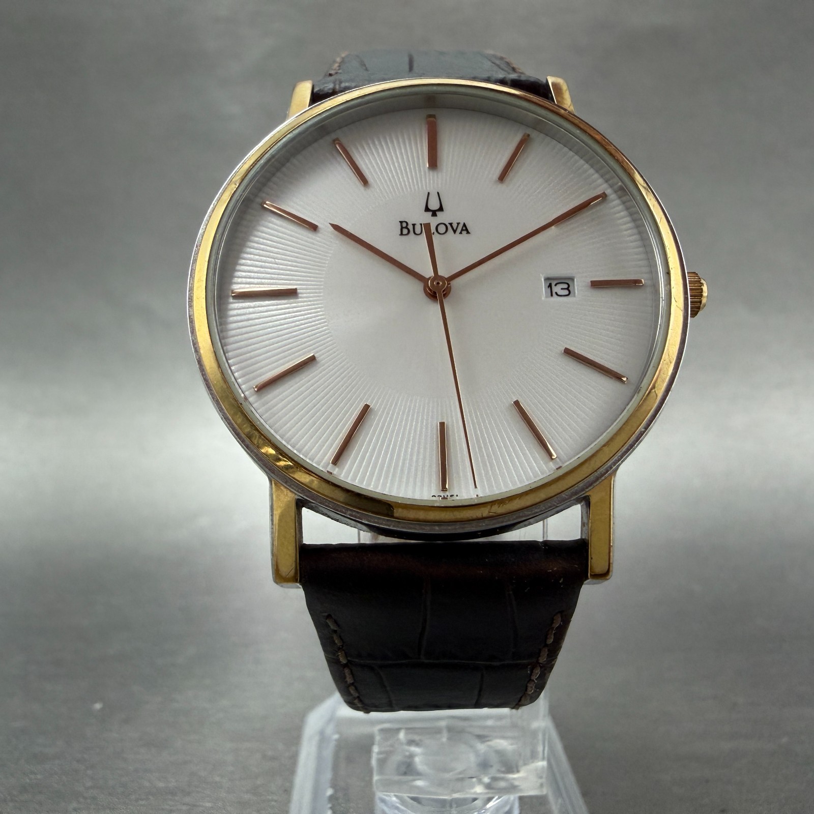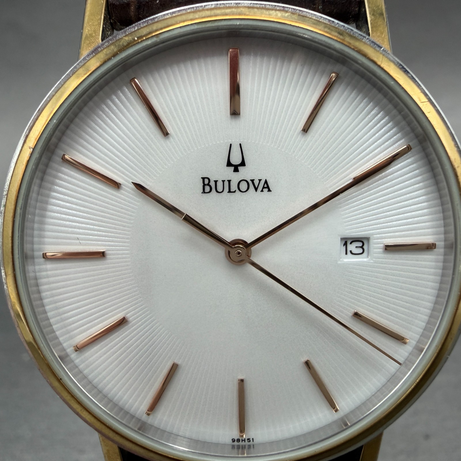 Bulova Watch Men 37mm White Dial Two Tone Date Round 98H51 New Battery TG4