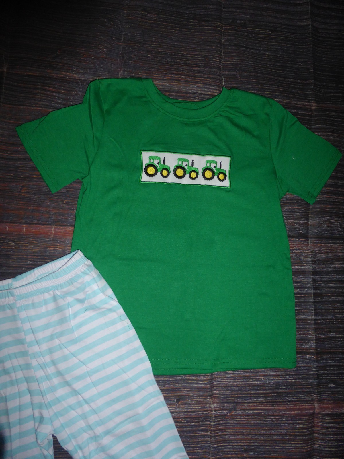 как выглядит NEW Boutique Boys Farm Tractor Short Sleeve Shirt Pants Outfit Set 7-8 фото
