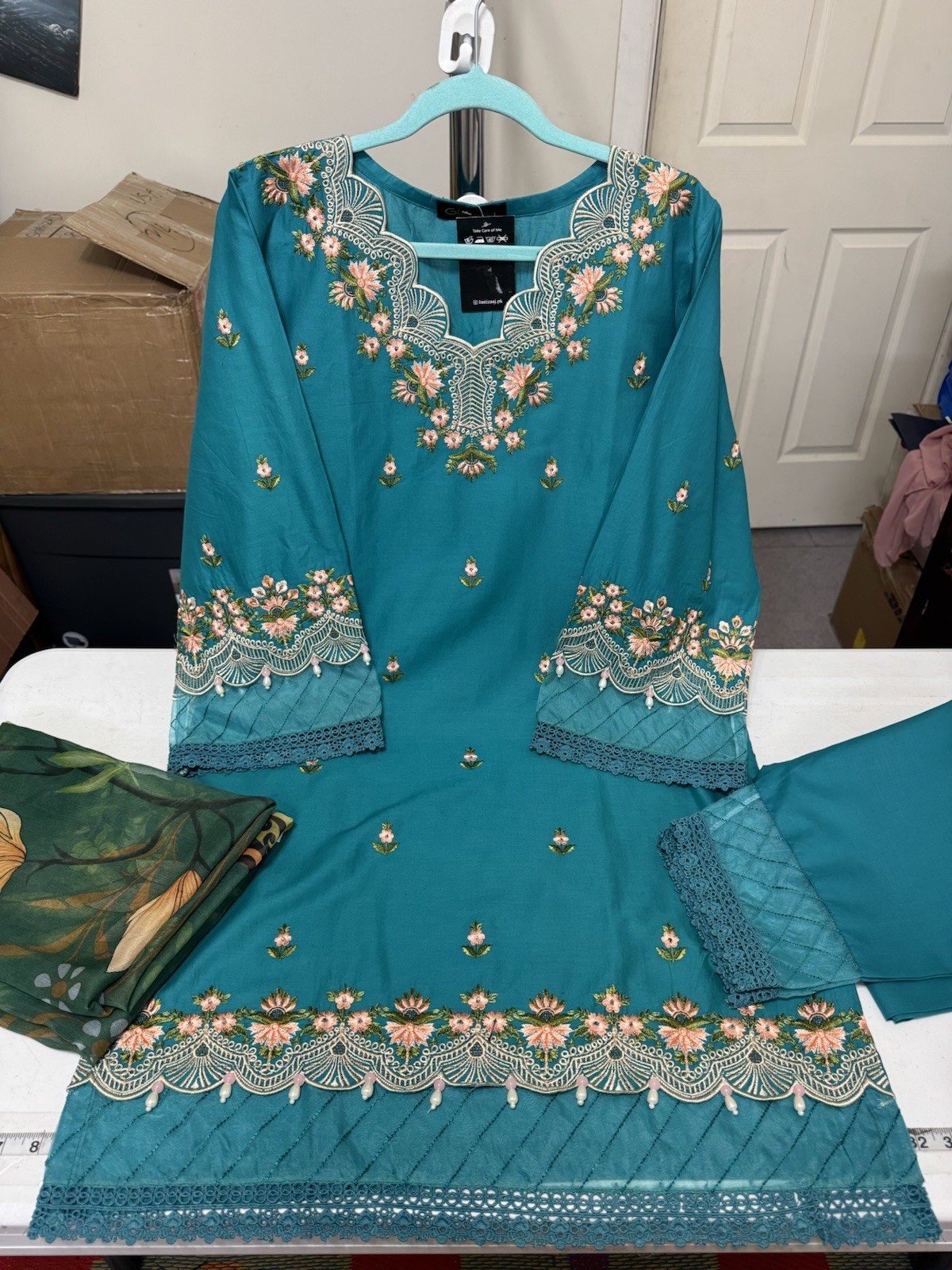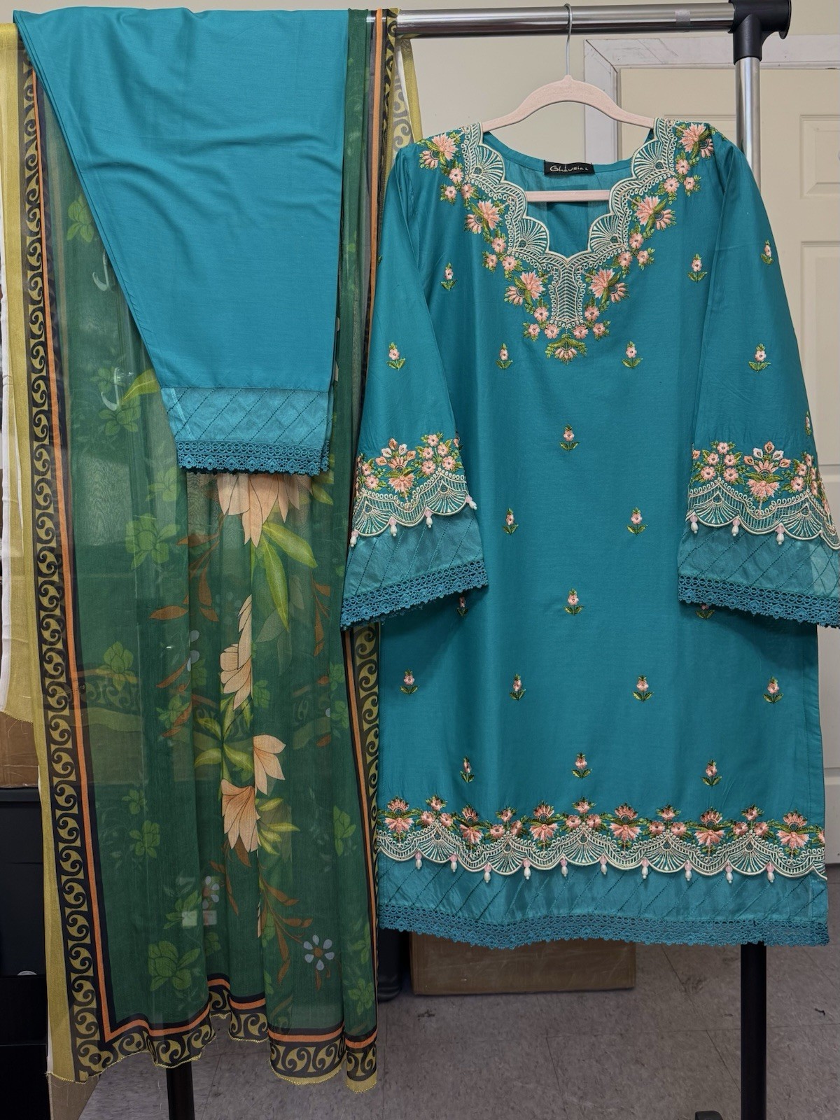 Luxury Cotton Embroidered Dress 3-Piece Set for Pakistani/Indian Parties