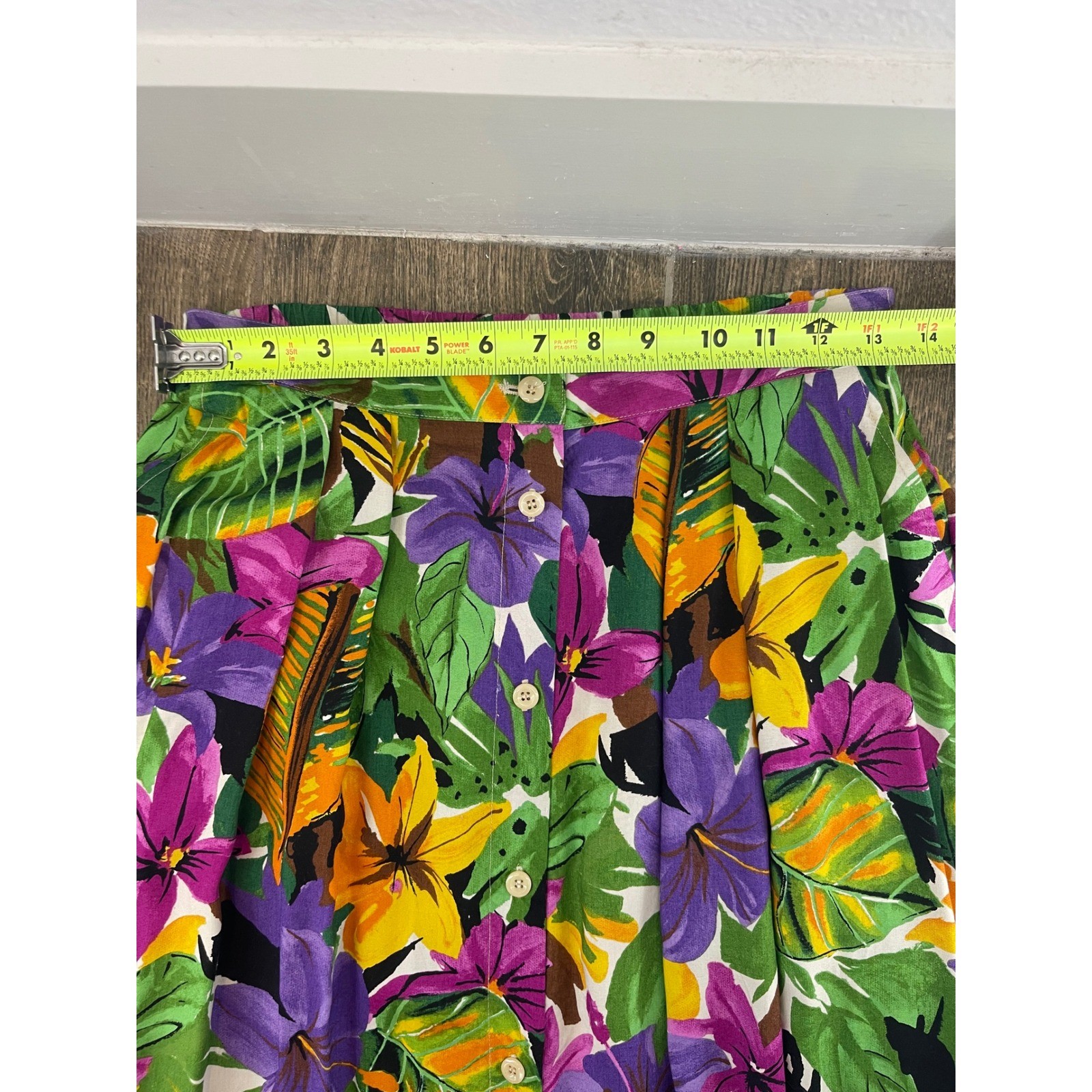 Vintage Pendleton Pleated Midi Skirt 10 Pockets Button Front Floral Feminine