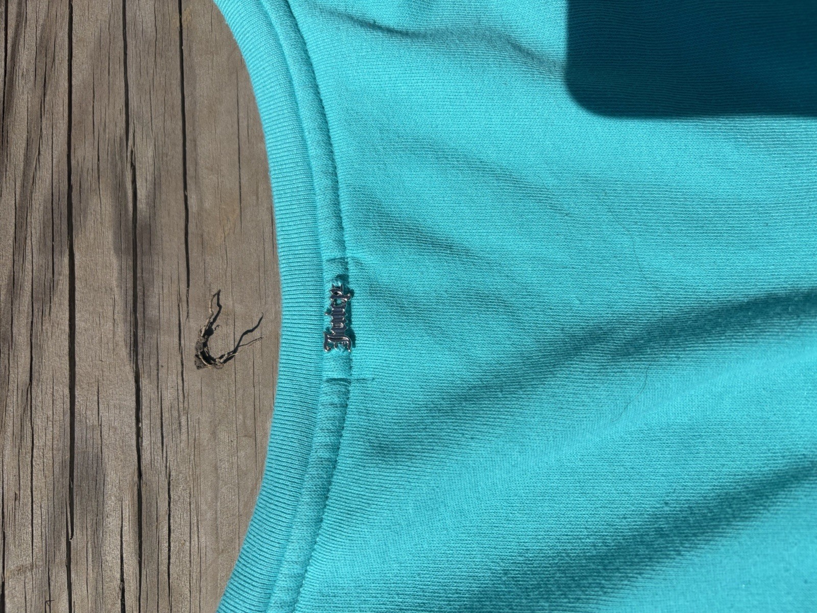 как выглядит Juicy Couture Insta Glam Blue Sequined Sweater Size Large Used фото