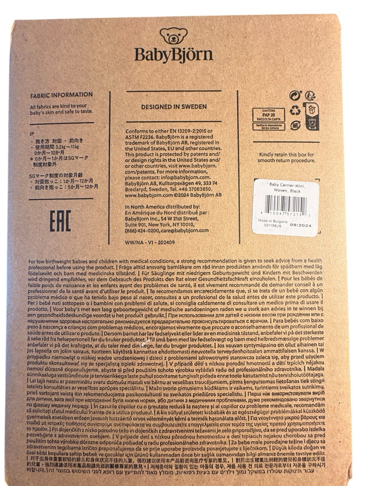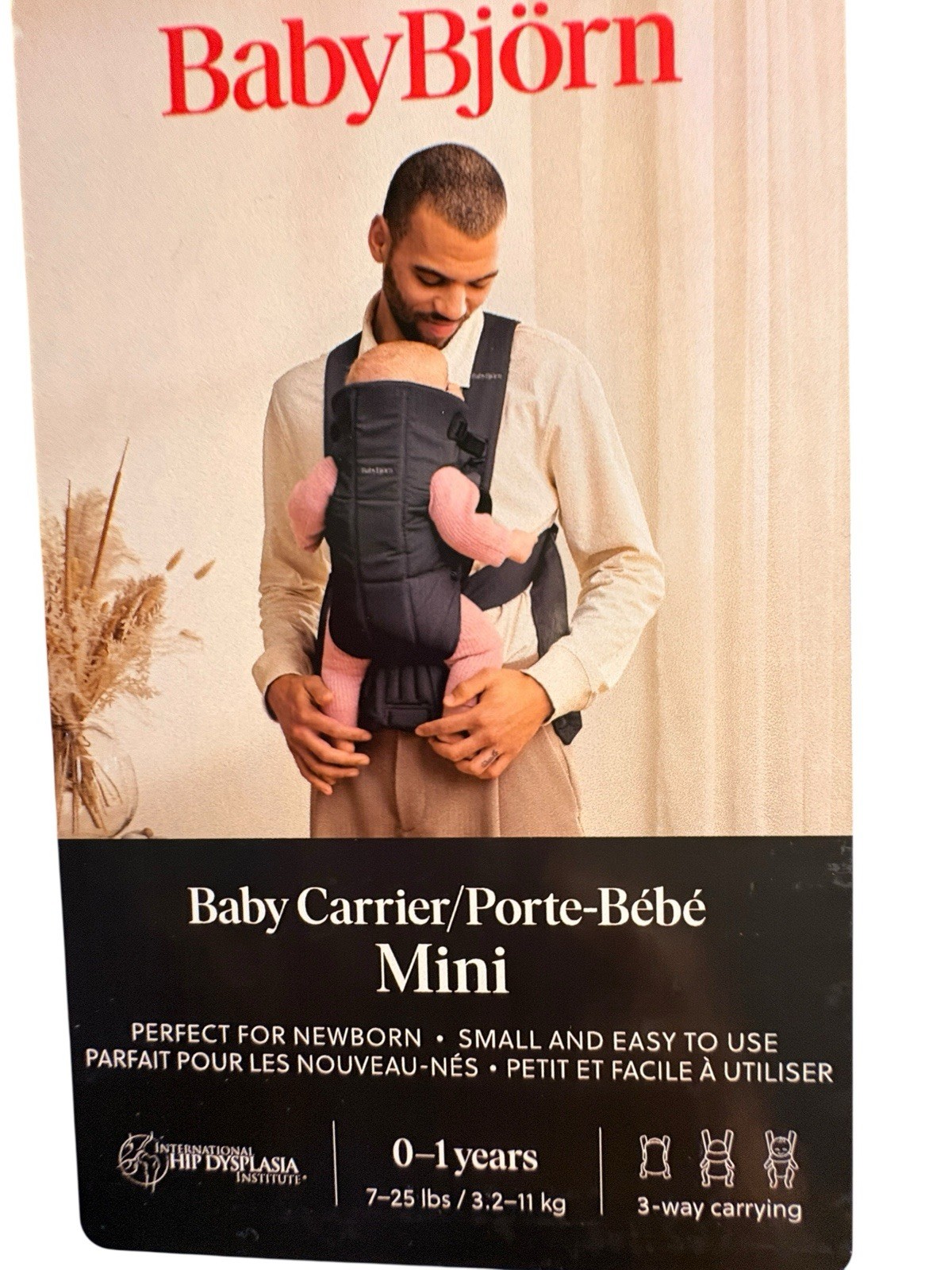 New BabyBjorn Mini Baby Carrier Black Newborn 0-1 Years 7-25 lbs 3 Way