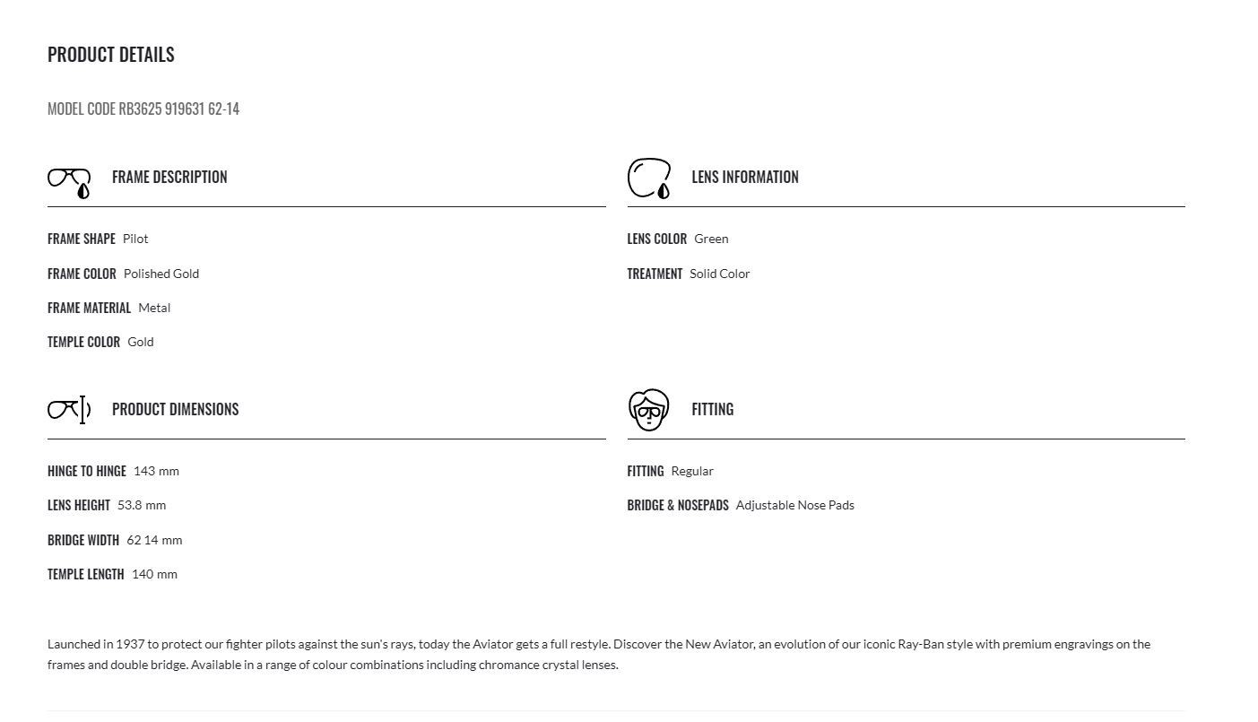 как выглядит Ray-Ban New Aviator Sunglasses RB 3625 9196/31 Unisex Gold Green 58mm w/case фото