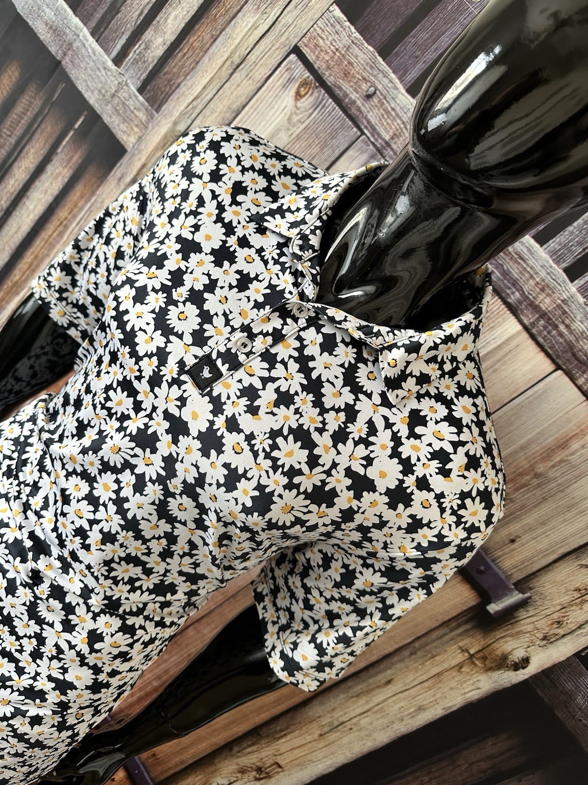 как выглядит Bad Birdie Golf SS White Black Yellow Daisy Polo Shirt XL Mint фото