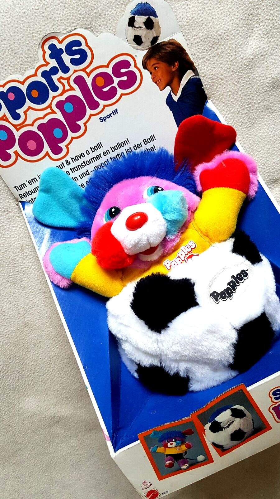 VINTAGE SPORTIF POPPLES: SOCCER MATTEL, 80 S PLUSH, BRAND NEW, OLD STOCK