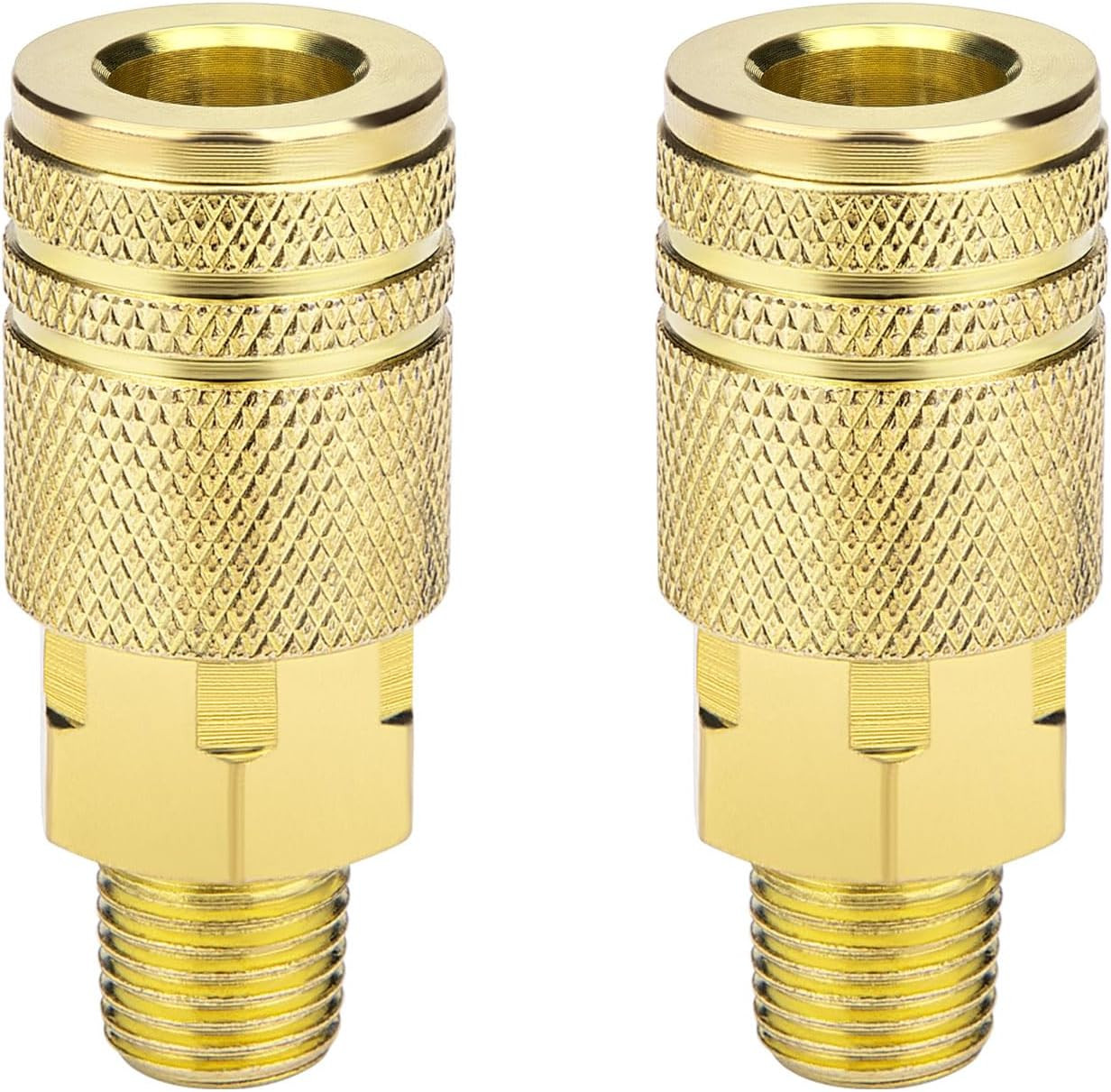 2 Packs 1/4 NPT M-Style Quick Connect Air Hose Fittings, High Flow Industrial B
