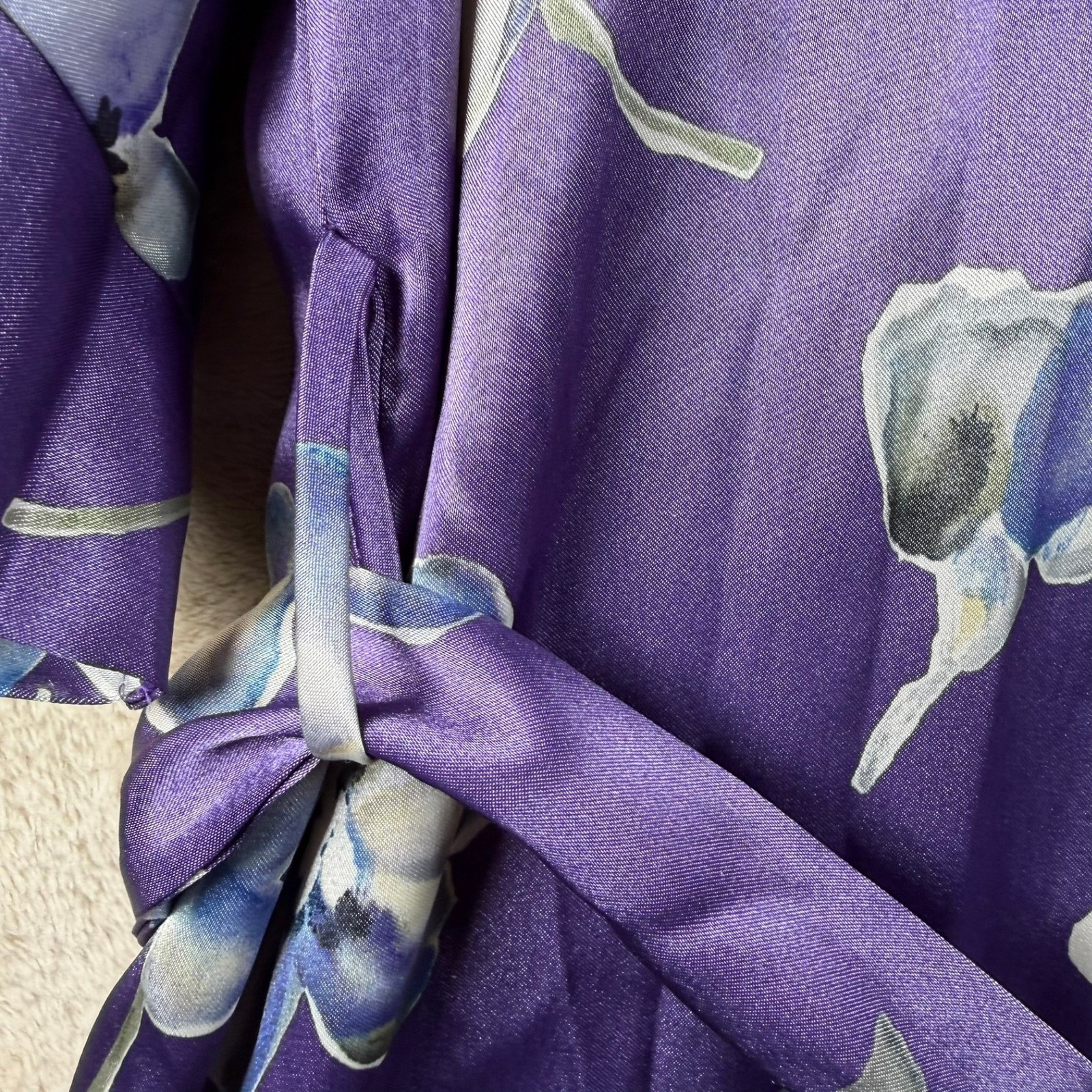 как выглядит Inner Most Vintage Purple Floral Satin Kimono Robe Lightweight Loungewear XLarge фото