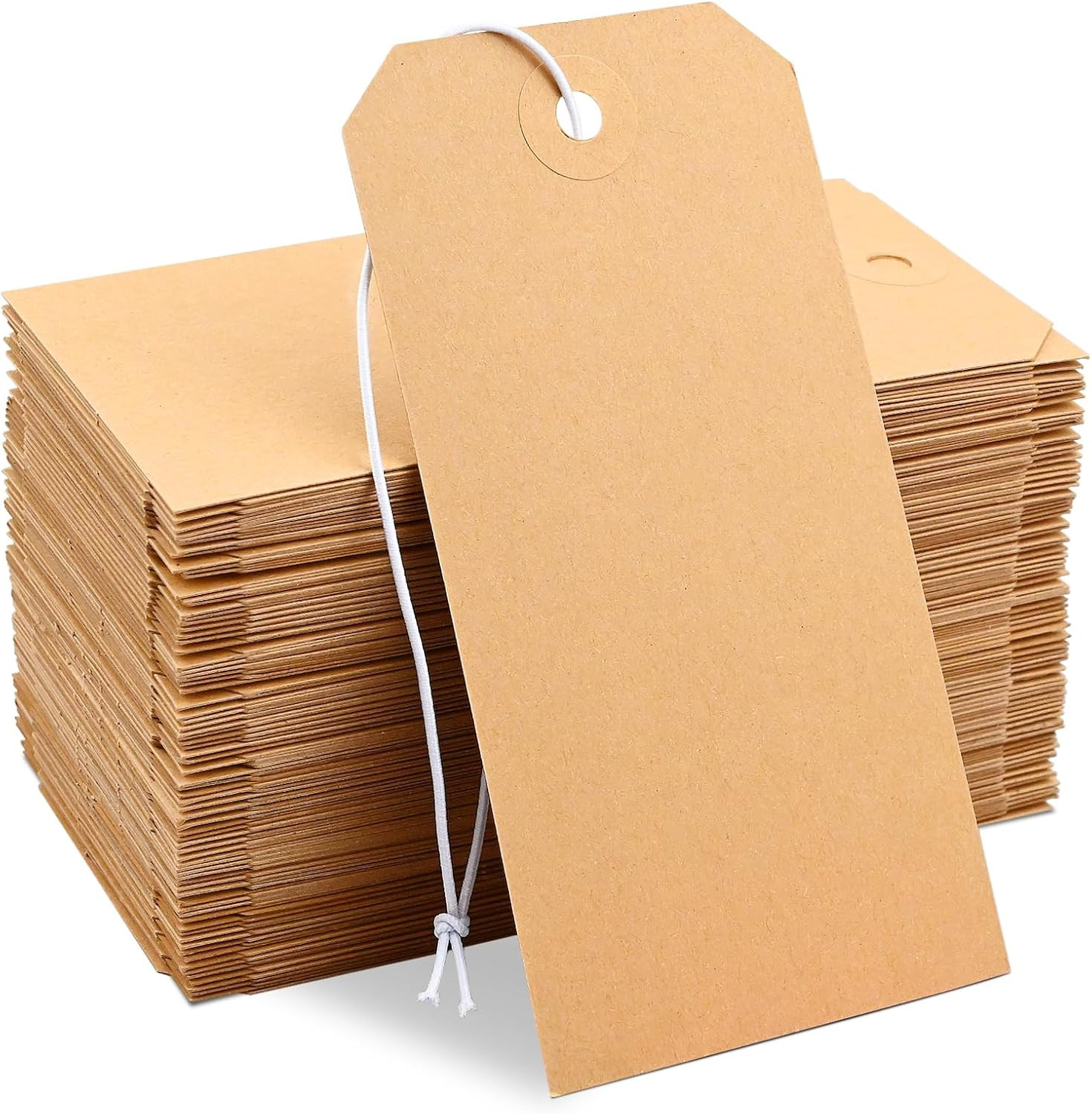 50 Pack Manila Shipping Tags with Elastic String Blank Labeling Tags with String