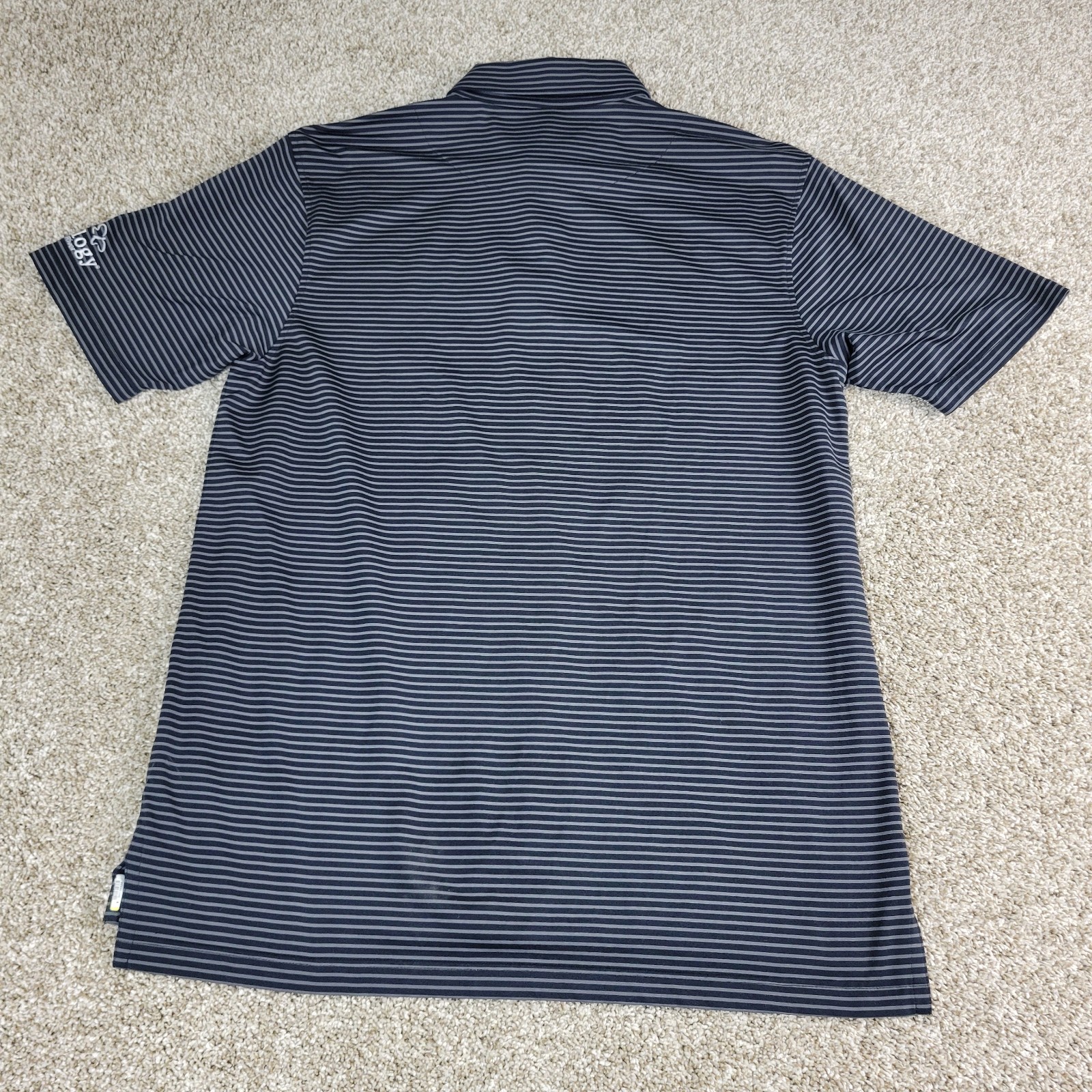 как выглядит Straight Down Mens Large Black Gray Striped Performance Stretch Polo SS фото