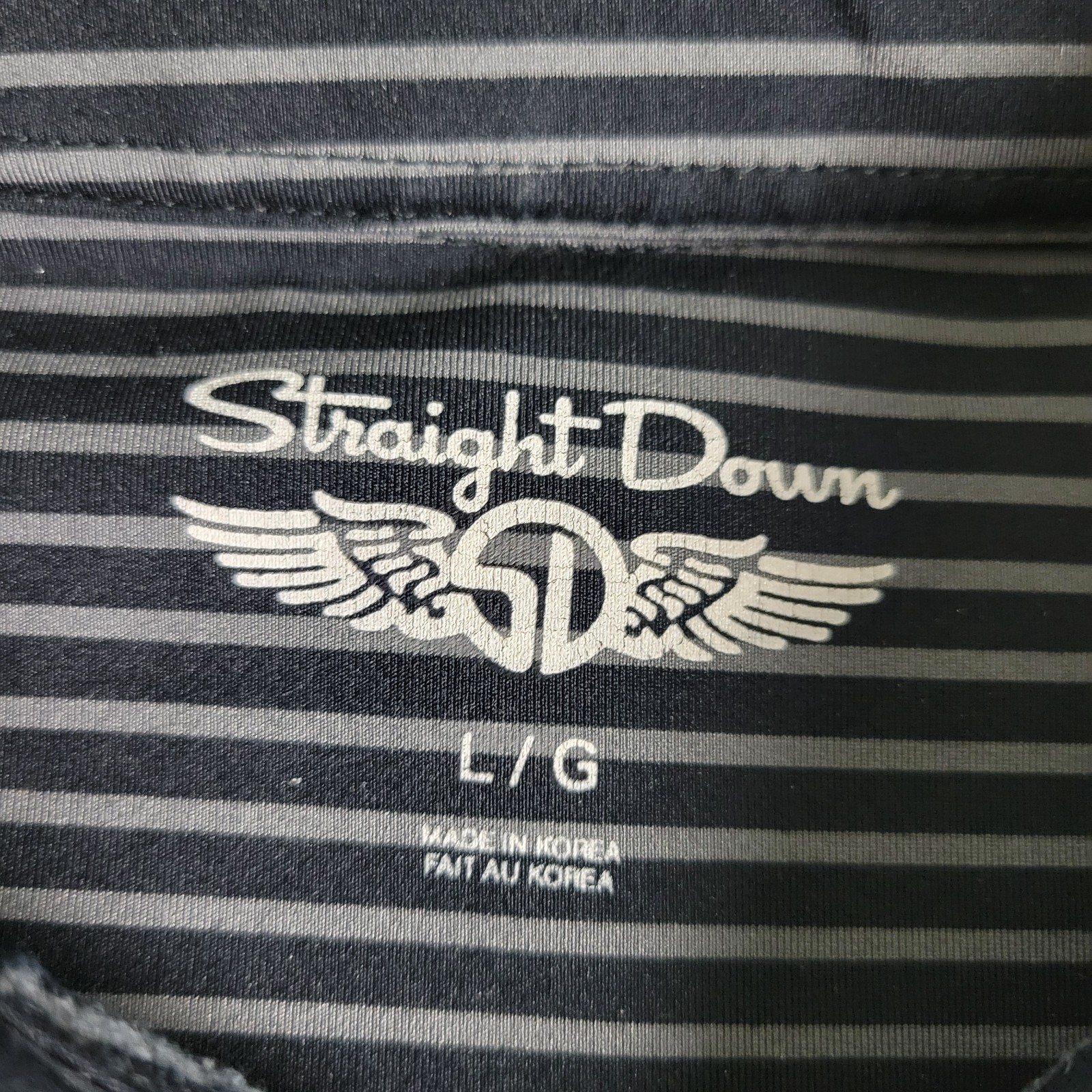Straight Down Mens Large Black Gray Striped Performance Stretch Polo SS