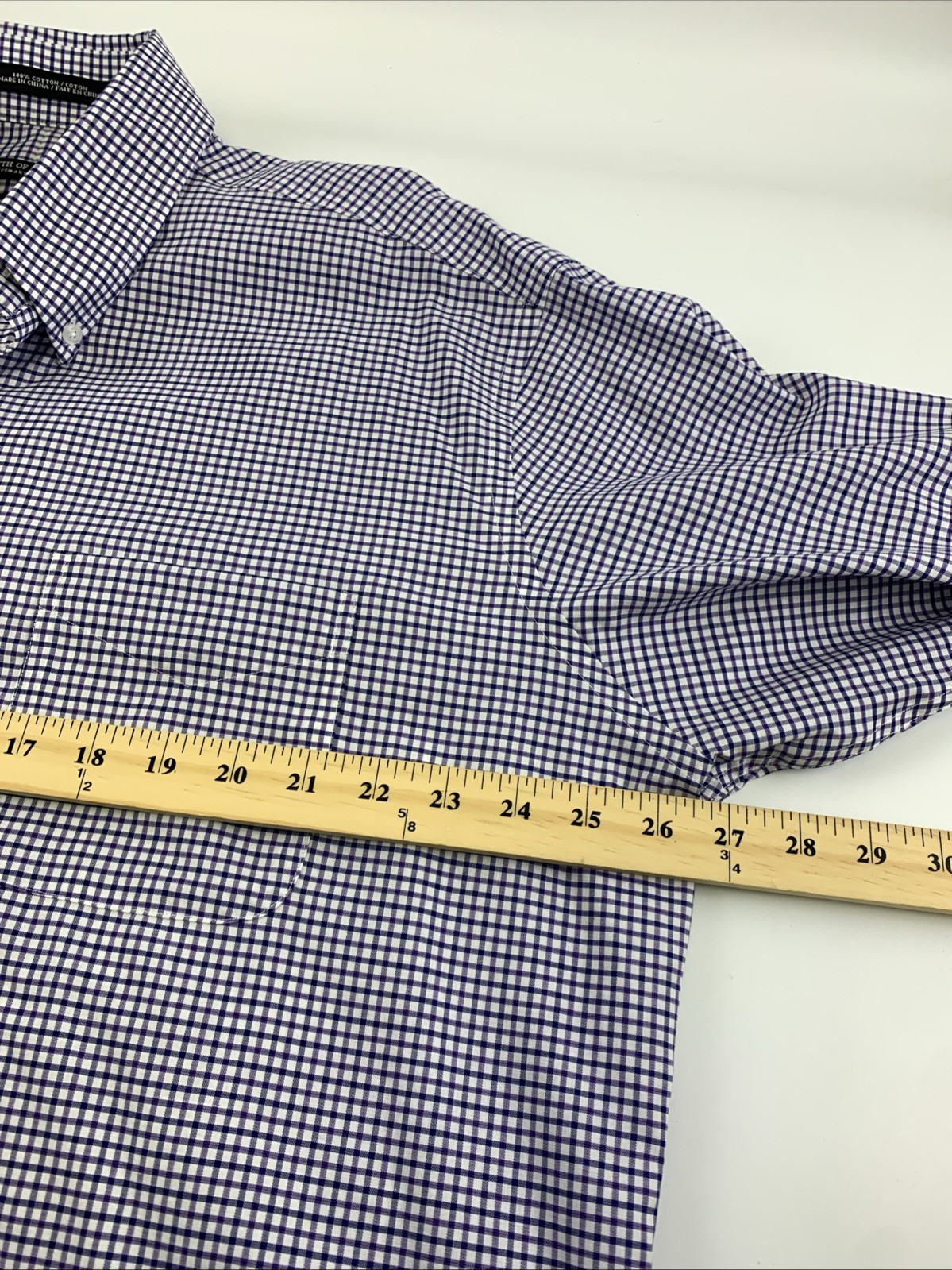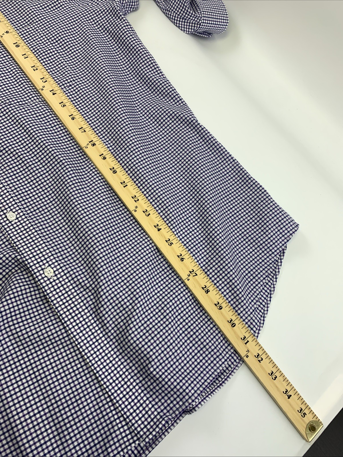 как выглядит Forsyth Of Canada Non Iron Button Down Blue Purple Plaid Shirt Cotton Men 17 1/2 фото