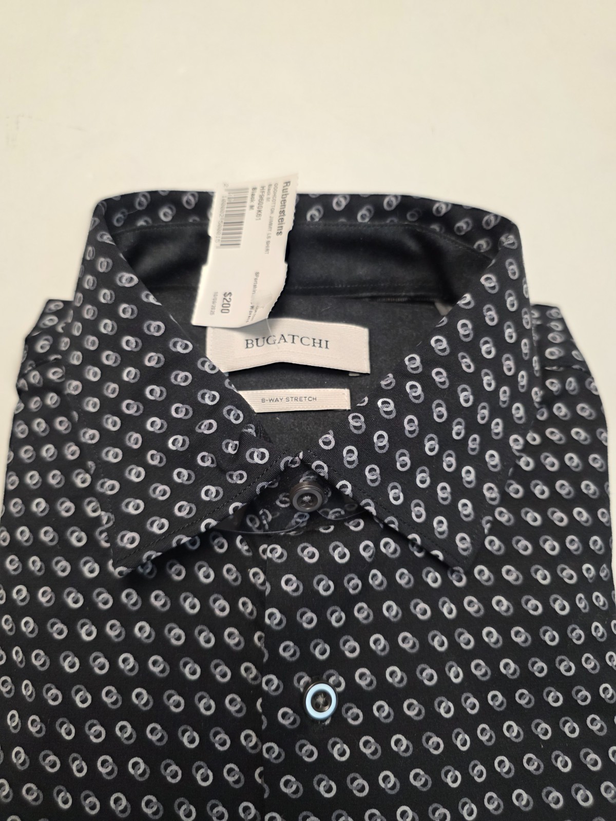 200 New BUGATCHI Casual Shirt COTTON 8 Way Stretch Men MEDIUM M Black GEOMETRIC