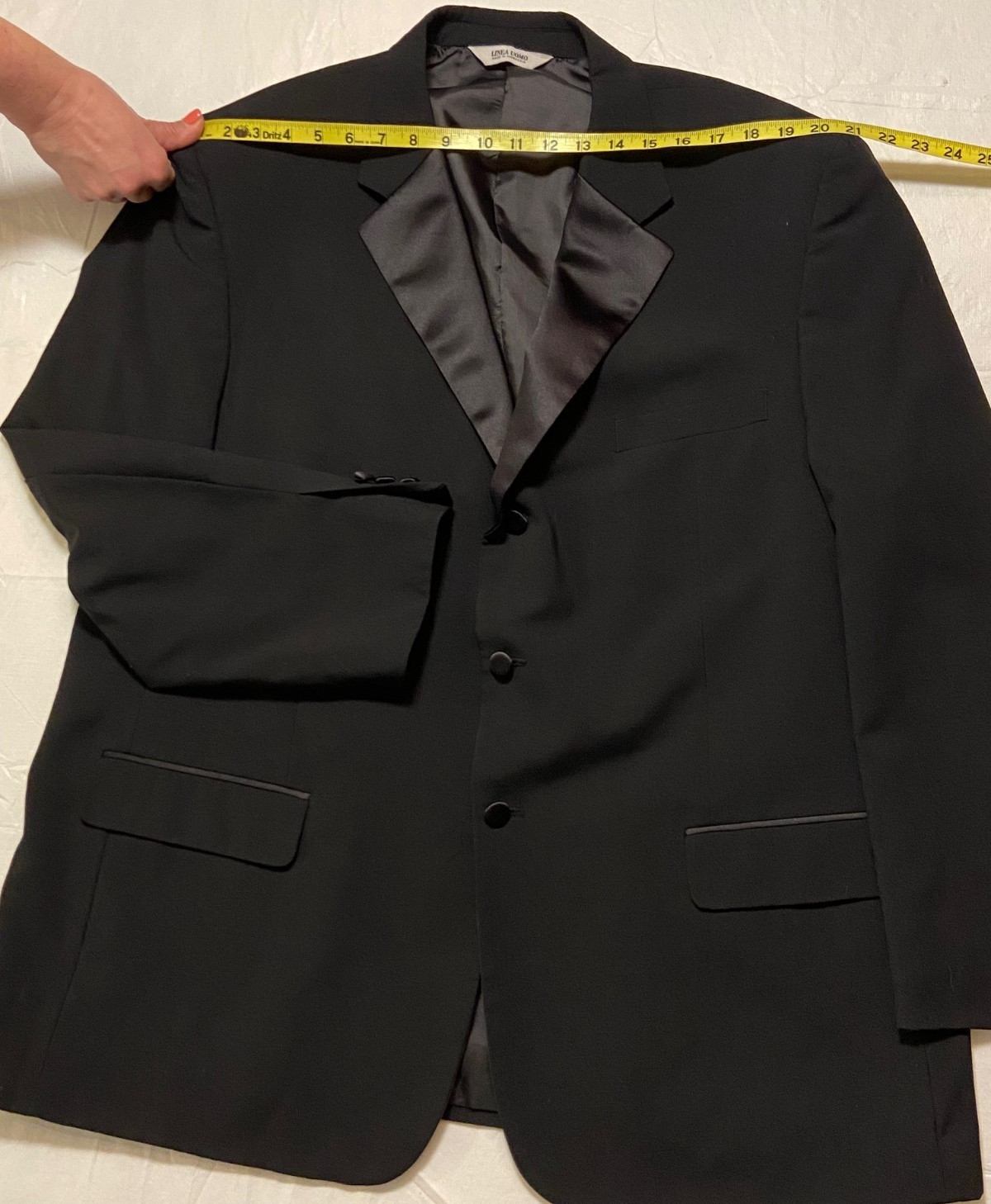 как выглядит Tuxedo Jacket LINEA UOMO Black Satin Trim Mens Size 50R OUTLET As Is фото