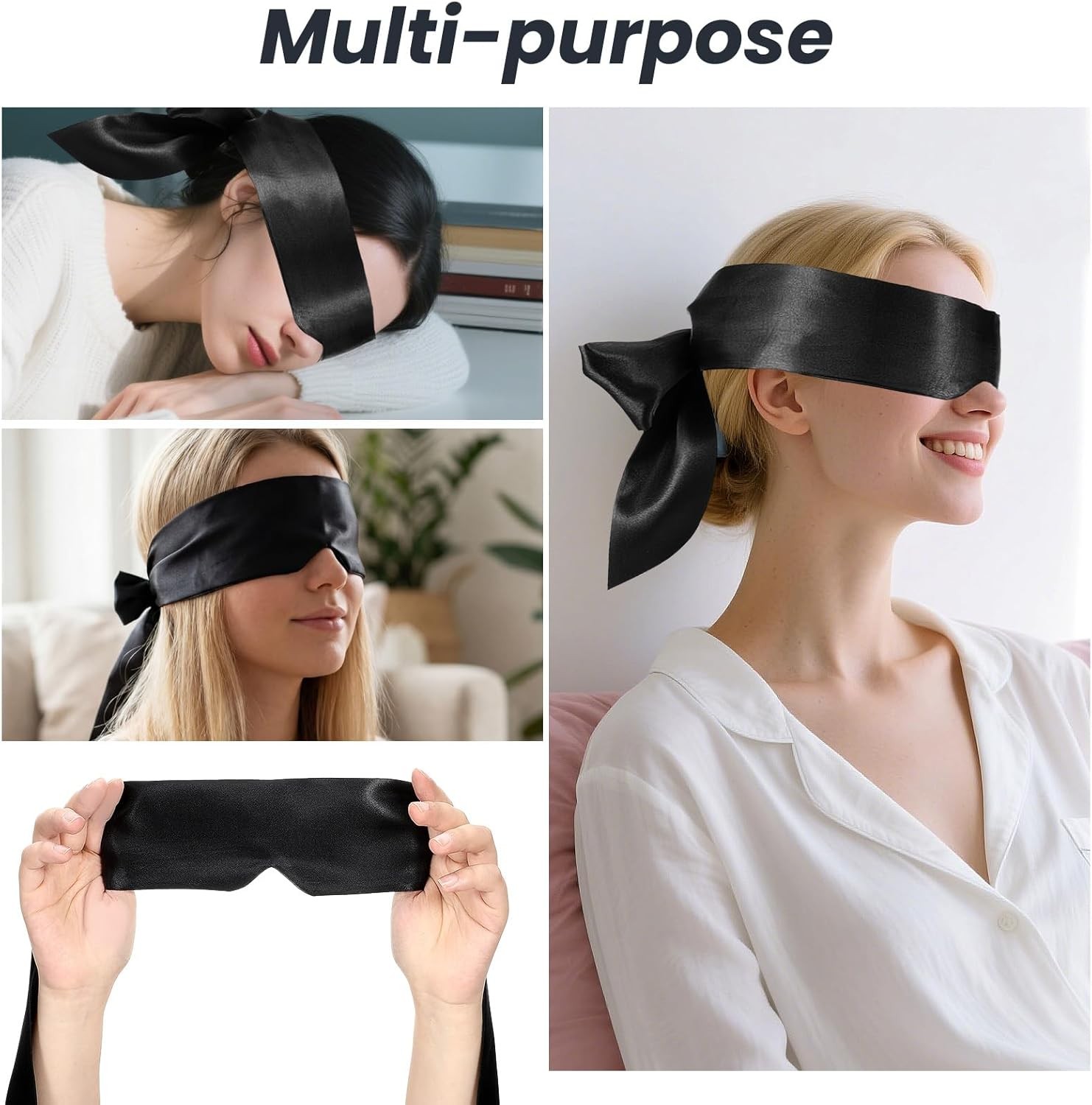 как выглядит Soft Black Satin Eye Mask, Eye Mask Blindfold for Women Men Comfortable Satin Sl фото