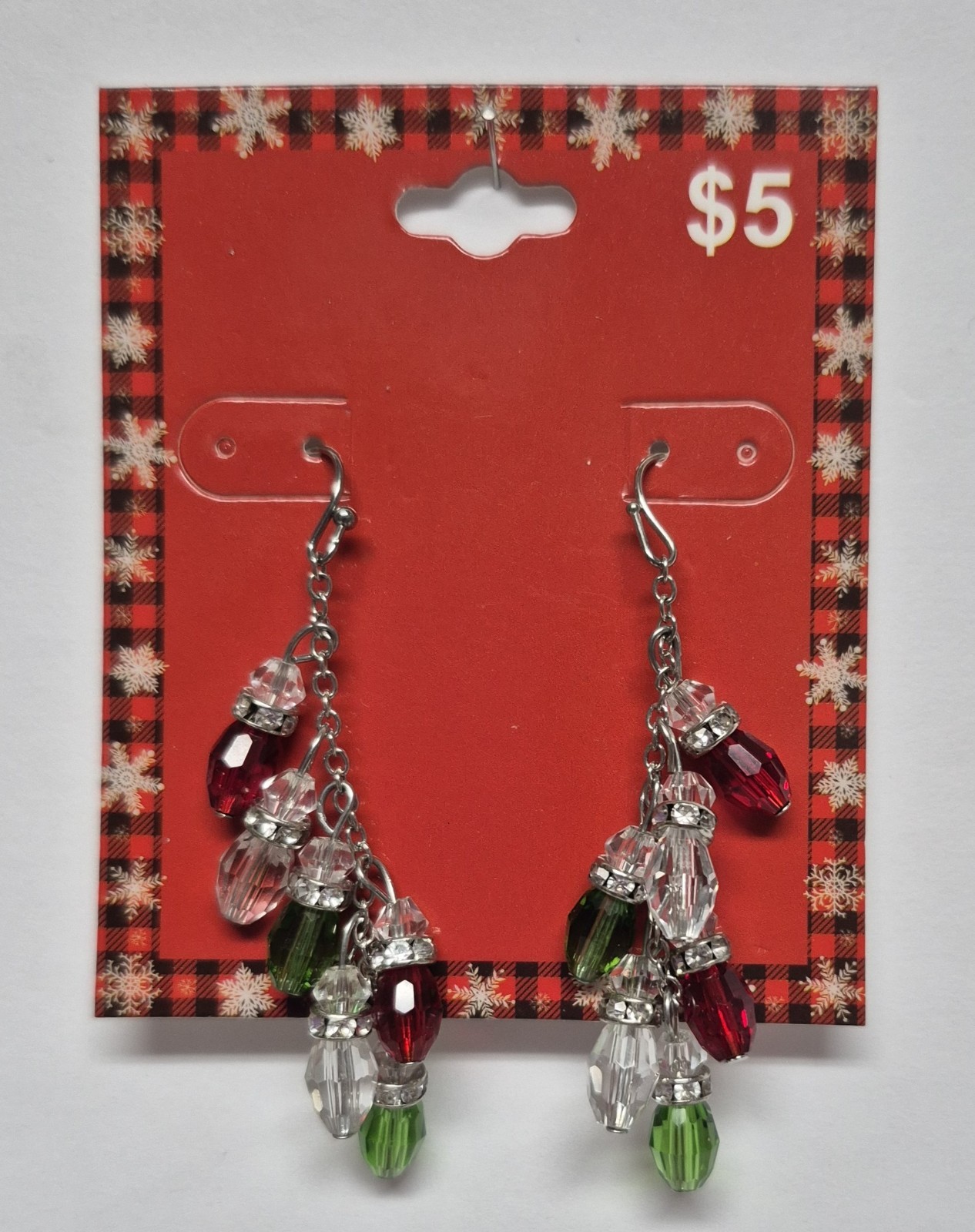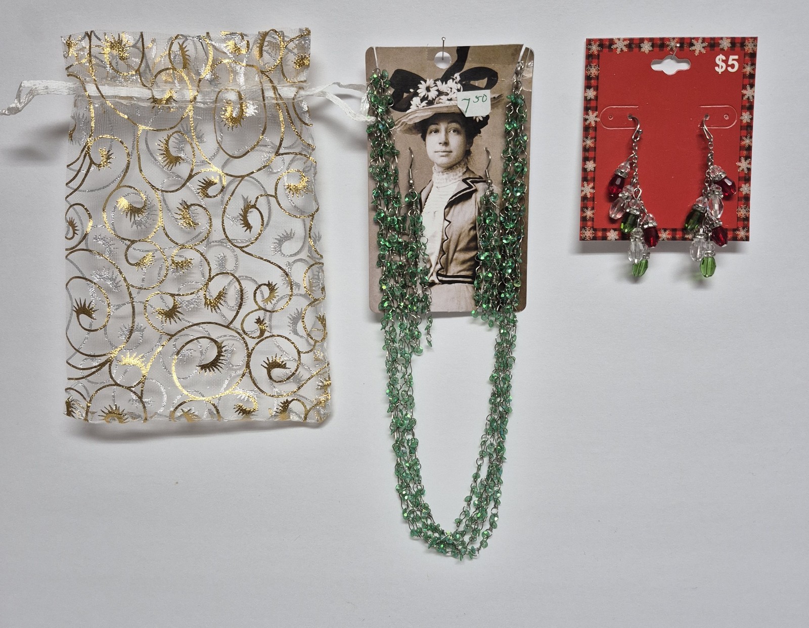 Jewelry Christmas Necklace Earrings Set Red Green Bead Earrings New W/ Pouch