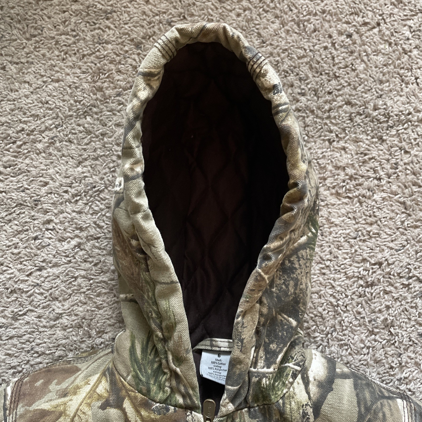 как выглядит Carhartt Camo Jacket Youth XS 6 Insulated Realtree Hooded Canvas Mossy Oak фото
