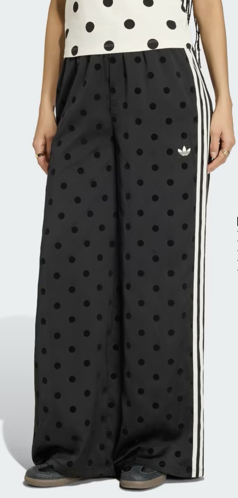 Adidas Satin Polka Dots Wide Leg Track Pant Black White size XL KV1169 NEW
