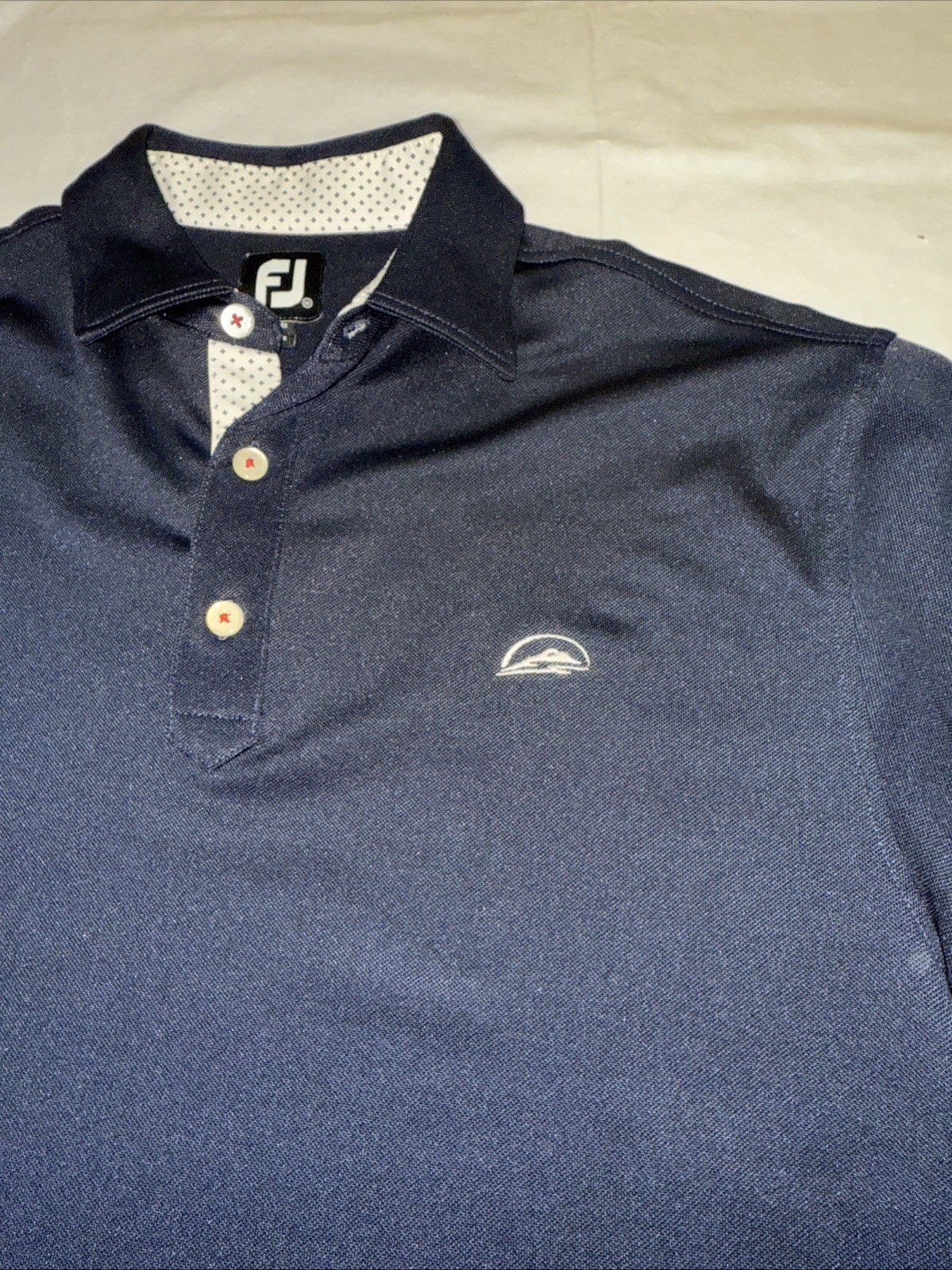 как выглядит FJ Footjoy Short Sleeve Golf Polo Mens Size M Blue with White Dots Performance фото