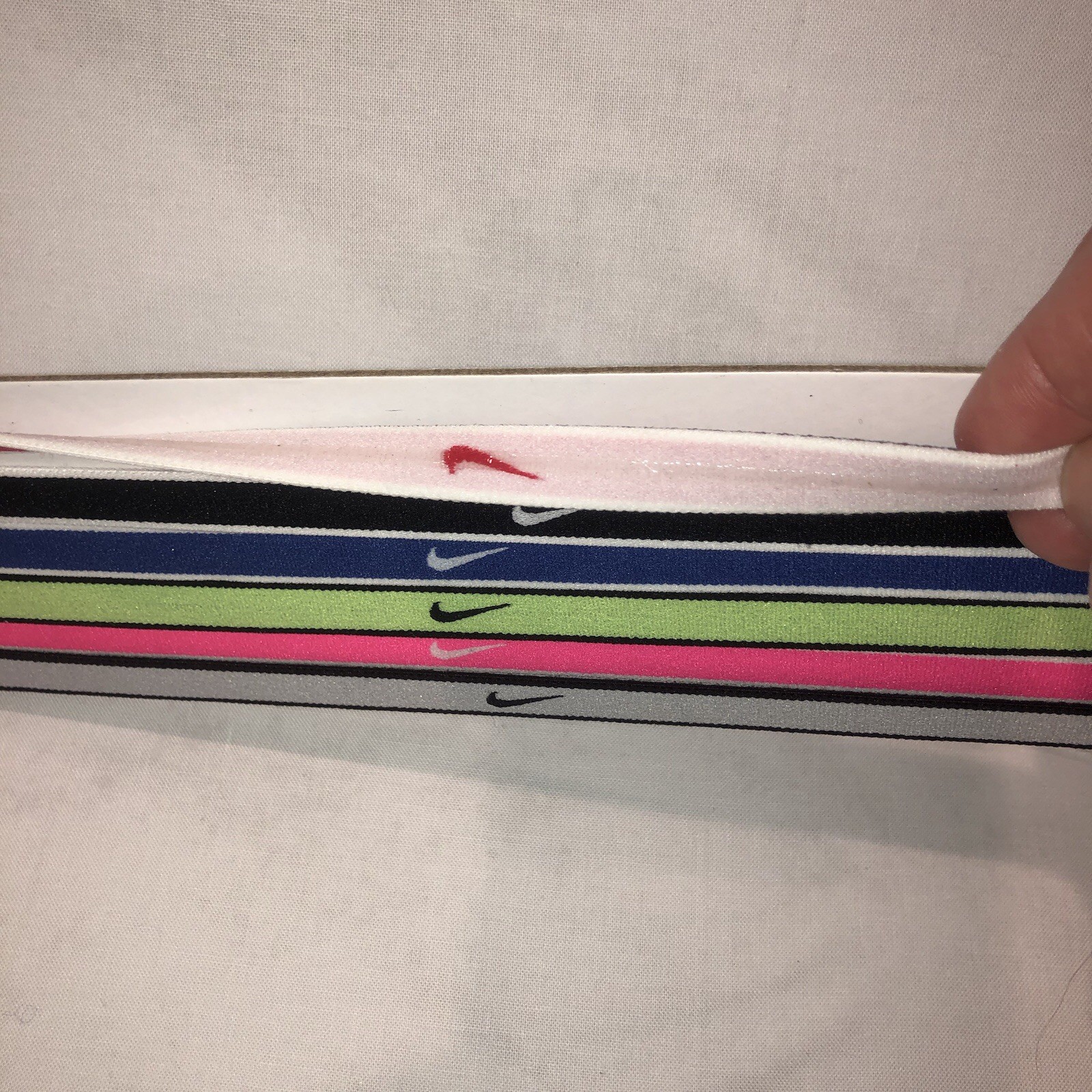 как выглядит Nike Swoosh Sport Headbands Hairbands 6 Pack Black Red Pink Green Purple Gray фото