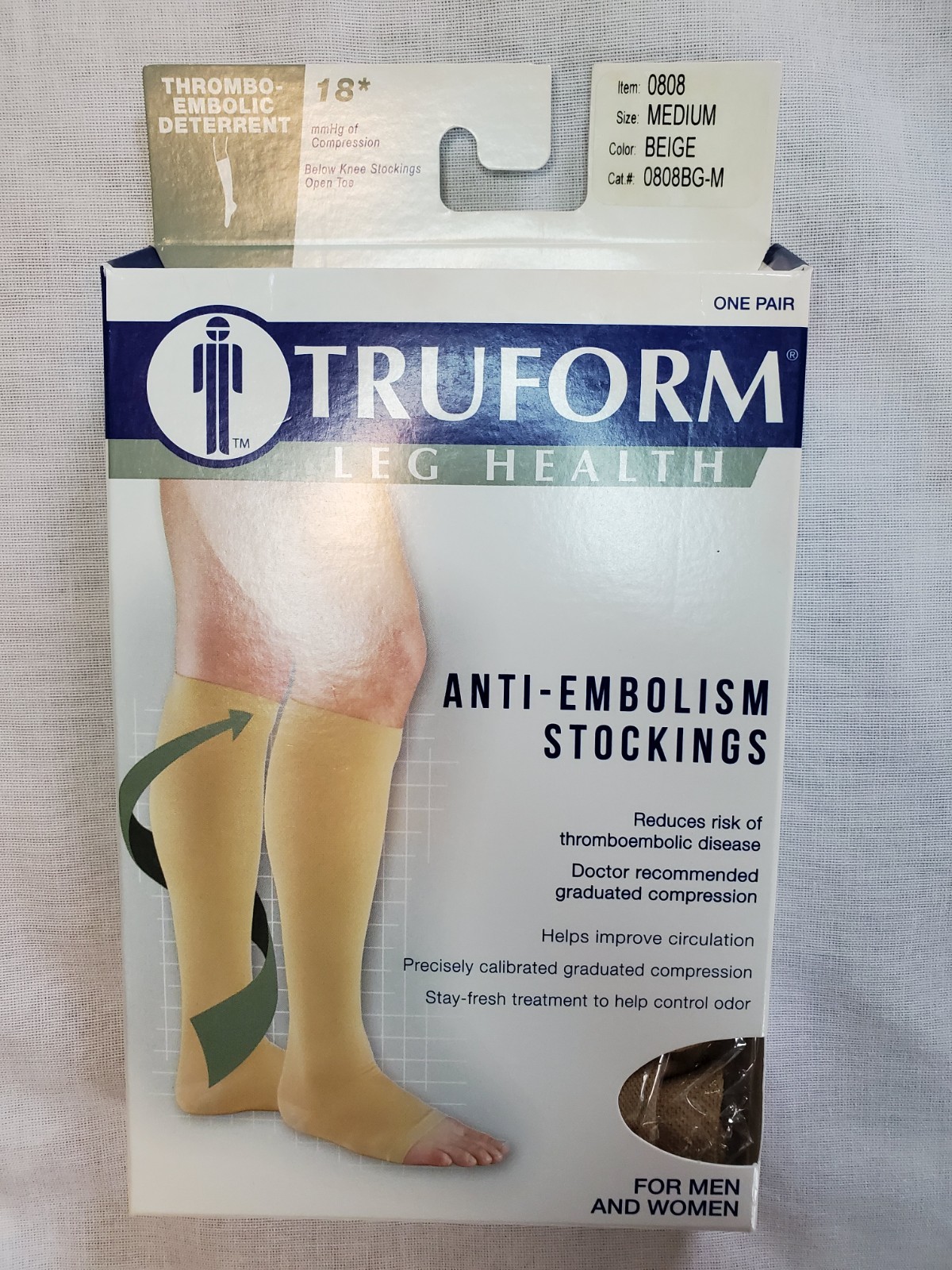 Truform 0808 Anti-Embolism Stockings Open Toe Compression Socks 18 mmHg Beige M