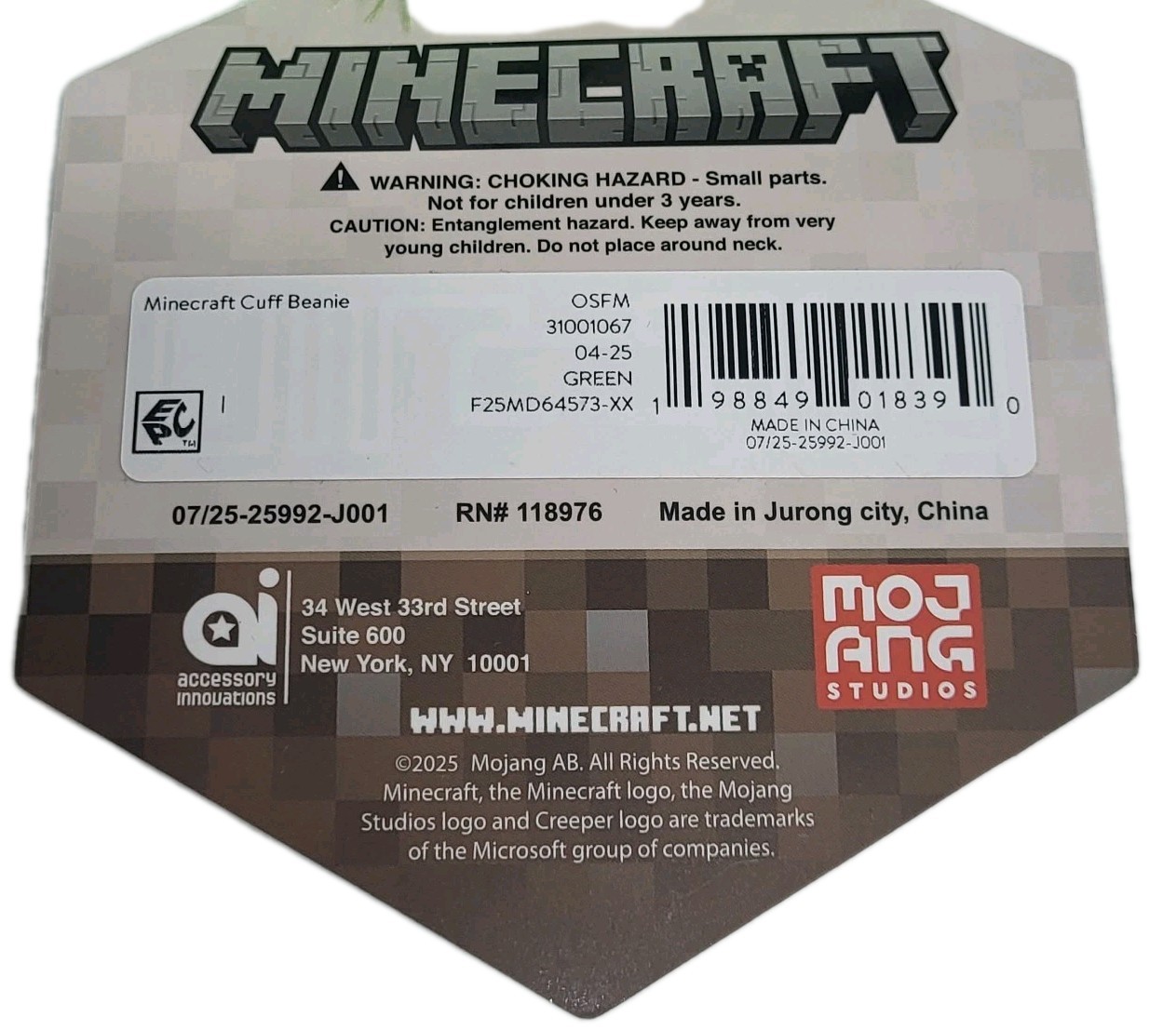 Minecraft Creeper Striped Ribbed Cuffed Beanie Hat NWT Cozy Winter Wear Gift